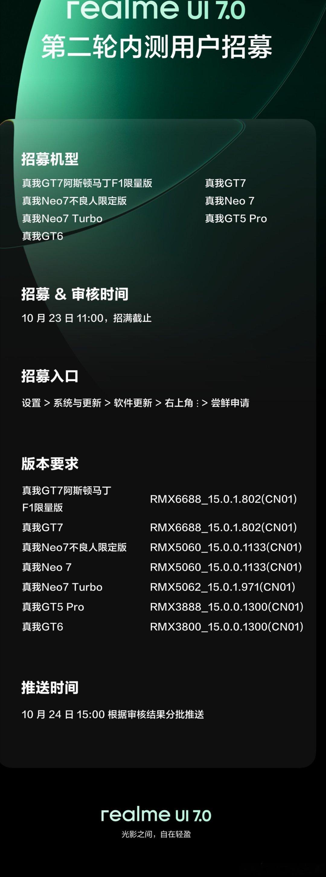 【realme UI 7.0 第二轮内测用户招募开启,覆盖真我 GT7、 Neo