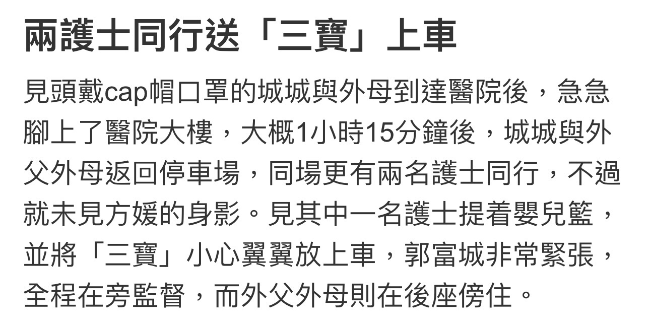 郭富城亲自驾车接三宝出院
