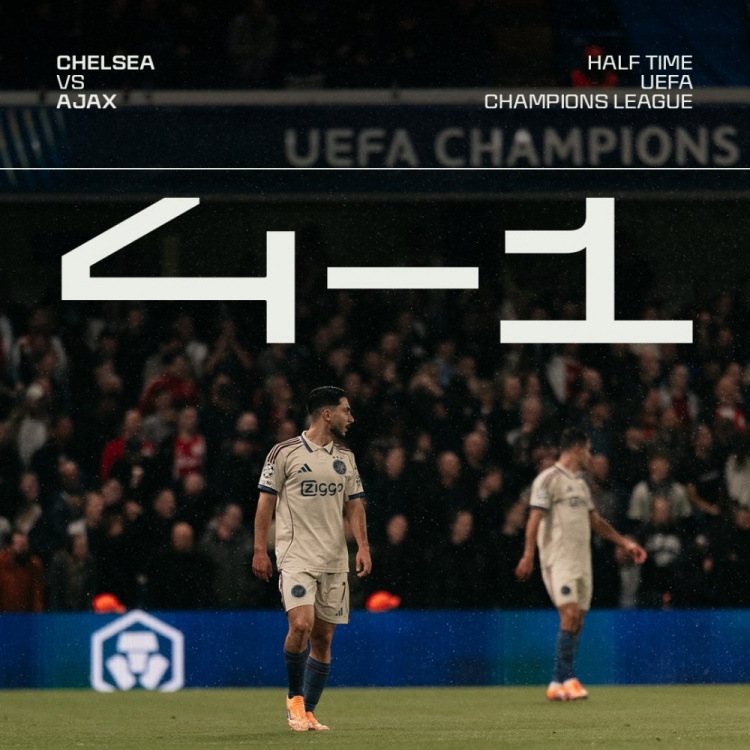 直播吧10月23日讯本轮欧冠焦点战,切尔西在主场上半场4-1痛击阿贾克斯。
