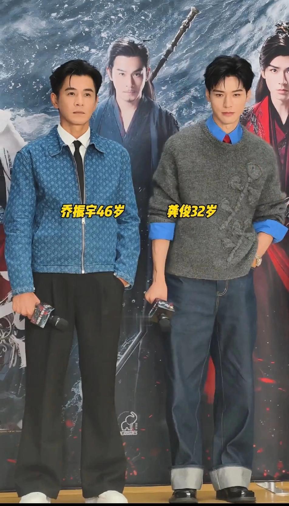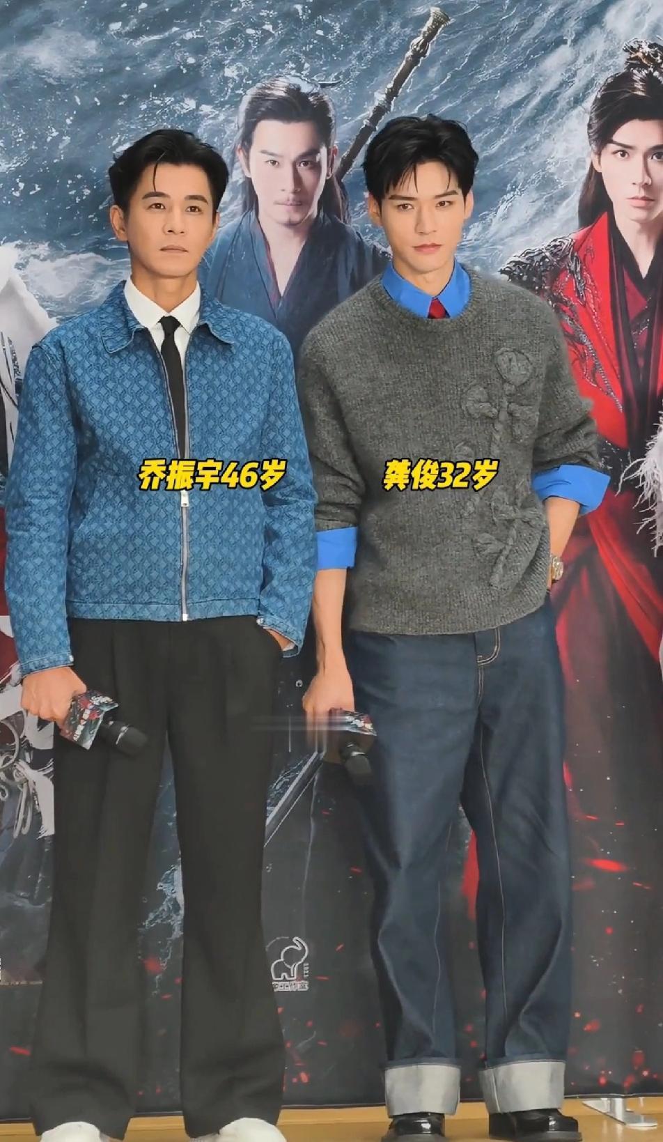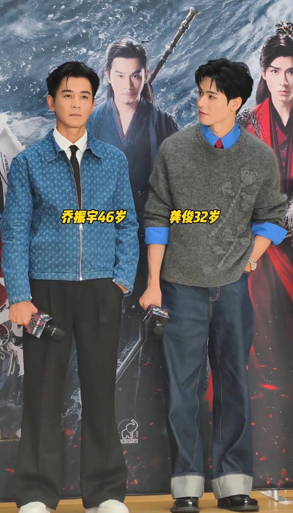 龚俊也算新生代男星里的颜霸了,可是46岁的乔振宇一点也没输啊!46岁了,当年“天涯四美”之一的乔振宇怎么还越来越帅了!龚俊很高的,乔振宇的身高一点也不逊色,龚俊晃来晃去,憨帅憨帅的,乔振宇站在那儿一动不动,气定神闲,有一种历经岁月打磨沉淀后的魅力,真的是硬帅啊!龚俊
