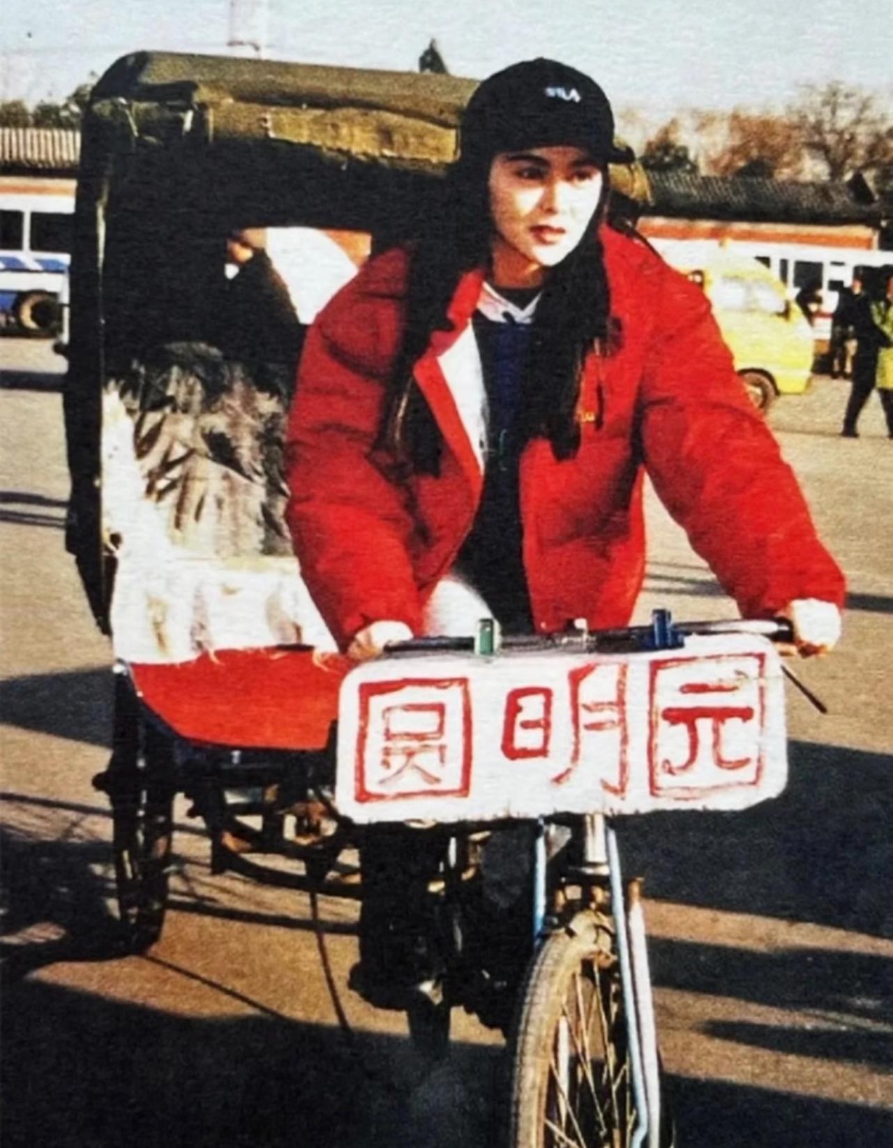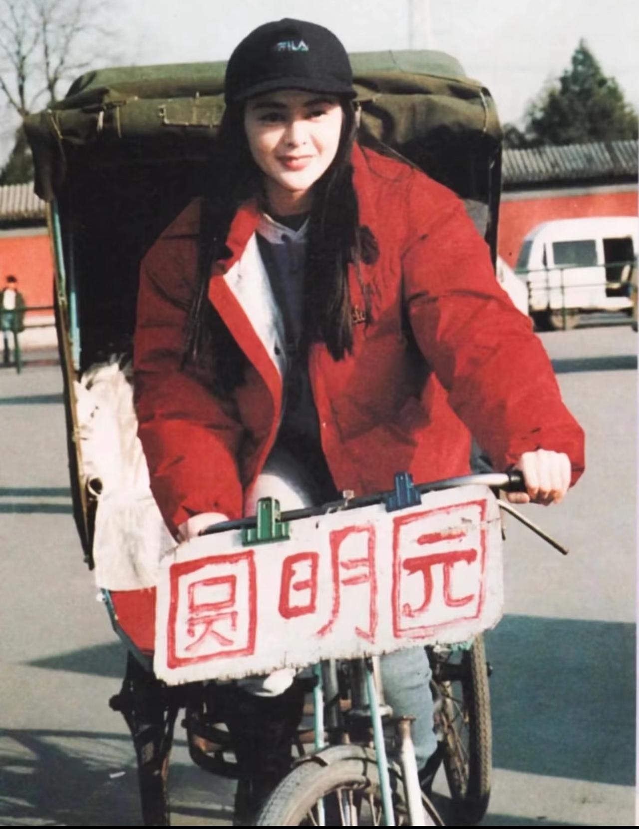 1994年,在拍摄作品《西楚霸王》期间,关之琳来到北京圆明园体验蹬三轮车。 能看出当时气温比较低,关之琳都穿上了棉衣,但骑车的时候并没有戴手套,这滋味想必并不好受。 但关之琳全程乐在其中,笑容比冬日暖阳还要温暖和煦,这看似土气的大红色棉袄穿在她身上真的好看的不得了。