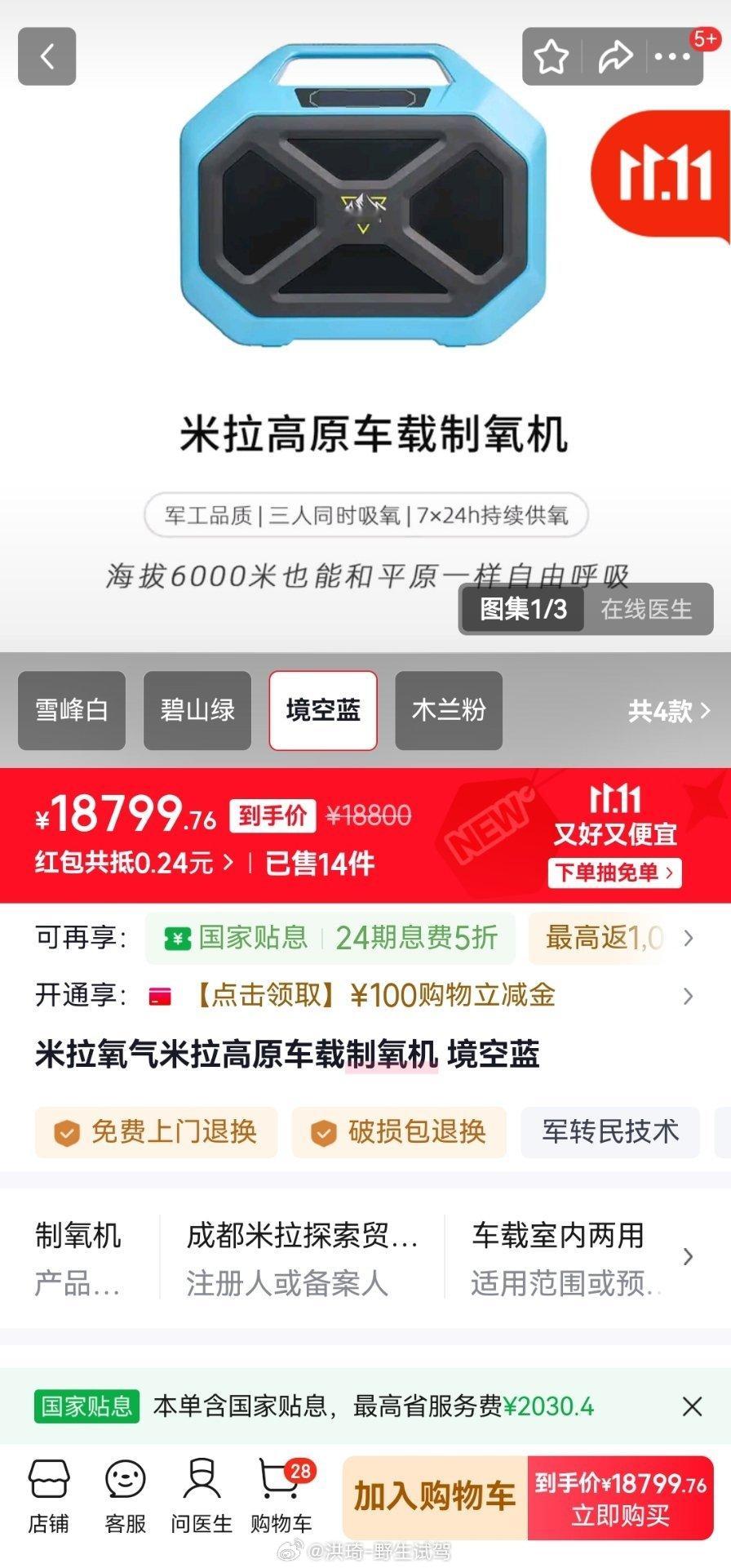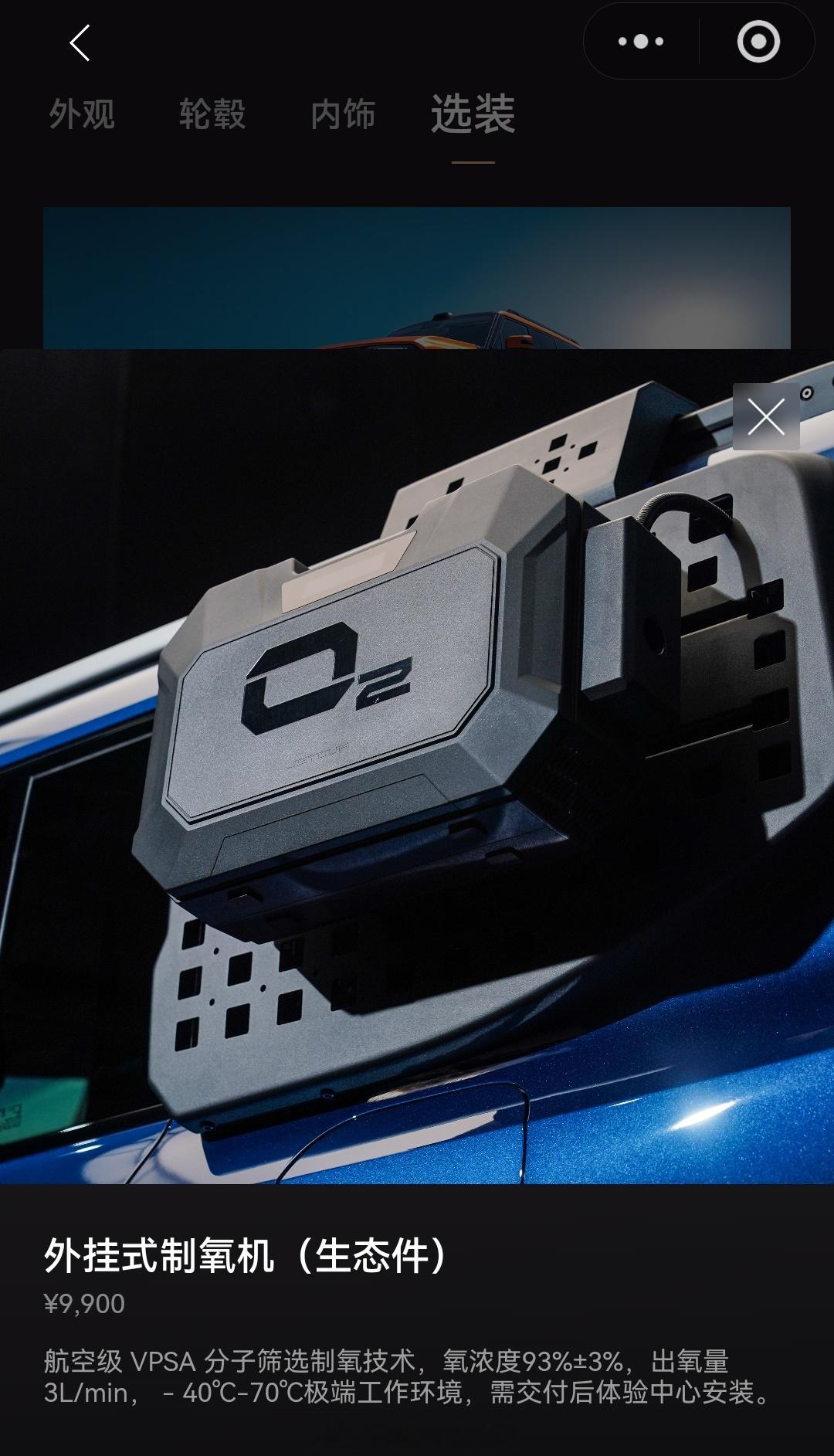纵横G700可选装的外挂制氧机,氮氧分离在车外完成,通过车顶走线进入车内(图2),就很好解决了车里乘客供氧的问题,主副驾头顶共两组四个氧气口,既可以车内弥散供氧也可以给某几个乘客集中供氧,堪称高原神器啊!选装价格9900元,上完牌后可去4S点加装,米拉制氧机是有点小贵… 纵横g700