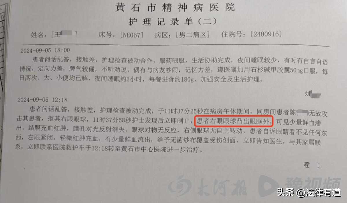 束缚带下的悲剧:精神病院老人被病友抠眼失明,35秒监控暴露监管漏洞,司法鉴定受阻维权难! 去年9月6日,湖北黄石精神病院午休病房内一声惨叫撕裂了寂静——68岁的老年痴呆患者王祥天被同室年轻病友陈某某疯狂抠挖右眼。冰冷的束缚带将他死死固定在病床上,动弹不得,成为这场袭击中无法反抗的猎物。 家属提供的医院护理记录清晰显示:35秒!从11点37分25秒暴力开始,到37分58秒护士才姗姗介入。王祥天右眼已凸出眼眶,染血纱布下血肉模糊,瞳孔对光反射几近消失。更痛苦的是左眼同样被殃及,紧闭中渗出鲜血。 王祥天先是被送到黄石当地医院,后又转运至武汉大学人民医院,经过18天医治,三次手术,最终还是没能保住眼睛,——右眼视神经毁损、脉络膜离断,眼球严重凸出。 院方事后辩解称“常规执行15分钟巡查”,但35秒足以摧毁一个老人的光明世界。更讽刺的是,同样住院的施暴者陈某某仅被象征性约束单手,而王老却如待宰羔羊般被捆住双手。院方称此举是为“防乱跑”,而对两种危险的约束差异竟毫无警觉。 家属控诉,住院期间家属被强制隔离探视,连送饭都需辗转医护人员之手。这一封闭管理机制使亲属对患者状况完全失察,危机预警被彻底屏蔽。 事故后9个月,王祥天仍陷于司法泥潭——罹患老年痴呆与脑萎缩,无法配合精密伤残检查,辗转三家鉴定机构均告失败。 赔偿之路濒临绝境,若按十级伤残处理仅能获赔5万元,但失明护理月成本已达5000元,赔偿杯水车薪。更荒谬的是,院方轻飘飘将事件定性为“意外”,仅对涉事科室进行内部处分。 @法律有道 1、这起血泪事件暴露了精神卫生医疗体系的系统性疏漏,亟待法律精准干预: 首先是高危混居风险失控:《精神卫生法》第38条明确要求分区分级收治。但本案中将躁动青年与痴呆老人混居,暴露出医院在分类隔离上的草率疏漏。 其次是约束监管双失灵: 医疗机构对约束状态下患者负有更高责任。院方放任单束缚患者与双束缚老人共处是严重失误,35秒应急处置更是监护完全失职。 再次是制度封闭存危机: 完全阻隔家属探视变相剥夺监督权。卫健委应当重新评估探视政策,在治疗秩序与安全保障间寻求新平衡点。 最后是司法鉴定呼唤制度革新,对失智老人须建立特殊司法通道:王祥天因认知缺陷无法配合常规鉴定,导致司法程序断裂。法律界亟需探索影像替代方案或监护人代为申请的特殊司法认证制度,避免失智群体陷入维权绝境。 2、法律责任认定多维构成: 一是涉事精神病院:违反安全保障义务,需承担主要赔偿责任(过错推定责任)。 《民法典》第1198条明确规定公共场所管理人的安全保障义务。 医院对于王祥天实施双手约束,而对攻击性患者仅单肢约束,违反《精神卫生法》第40条“最小限制原则”。 将精神分裂症患者与老年痴呆患者混居,未按《精神障碍诊疗规范》进行分区管理,增加侵害风险。 院方自称“15分钟巡查”,但监控显示施暴持续35秒无人干预,实质未履行密集监控义务。 基于这些,足以反映医院没有履行充分的安全保障义务,存在过错。根据《民法典》第1218条:患者因医疗机构过错受损,推定医方担责。 二是施暴者陈某某承担补充赔偿责任(需先鉴定行为能力)。 根据《民法典》第22条,需司法鉴定其案发时是否处于“不能辨认行为”的精神病发病状态。若丧失行为能力:由其监护人承担补充赔偿责任;若具有限制行为能力,本人与监护人按过错比例担责。 3、监护场所成为伤害现场,谁来守护最后的弱者? 35秒的监控画面中藏着一个无法直视的现实:当精神病院用约束带剥夺老人自卫能力后,却未能兑现将伤害隔绝于外的承诺。 施暴者是病人更是患者,错位混居的制度设计终酿悲剧。比单次事故更值得警醒的是维权体系的二次伤害——当医学壁垒阻断了司法通道,本已弱势的群体在法律盲区里被再度抛弃。 “当病房的束缚带绑住他们的手, 谁来系牢制度保护的责任链? 一个无法配合伤残鉴定的失智人, 恰恰最该享有免于恐慌的生存权。” 关注@法律有道一起析案说法。