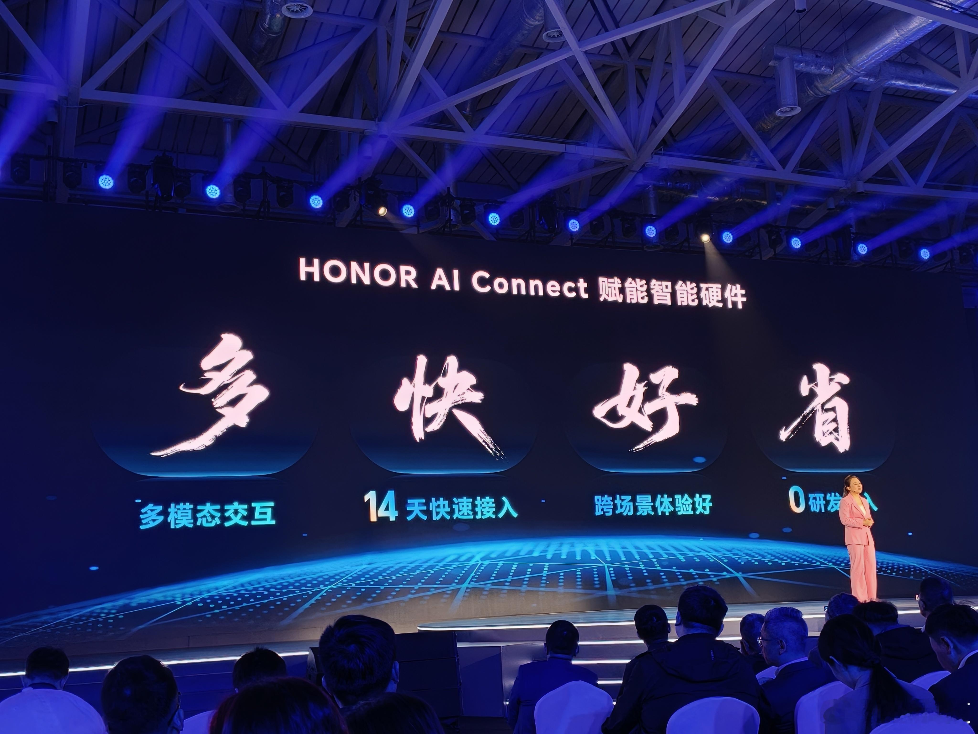 得AI者得天下,得终端者得未来[666]荣耀致力于携手全球合作伙伴共建AI终端生态,共创万物智联的未来,HONOR Connect正式升级为HONOR AI Connect平台,从“互联”迈入“智联”新阶段,为生态合作伙伴提供智慧化的共享、入口的共享、和生态的共享,支持语音、视觉等多模态交互,并推出A系列软硬一体化模组,实现即插即用的AI能力接入[666]