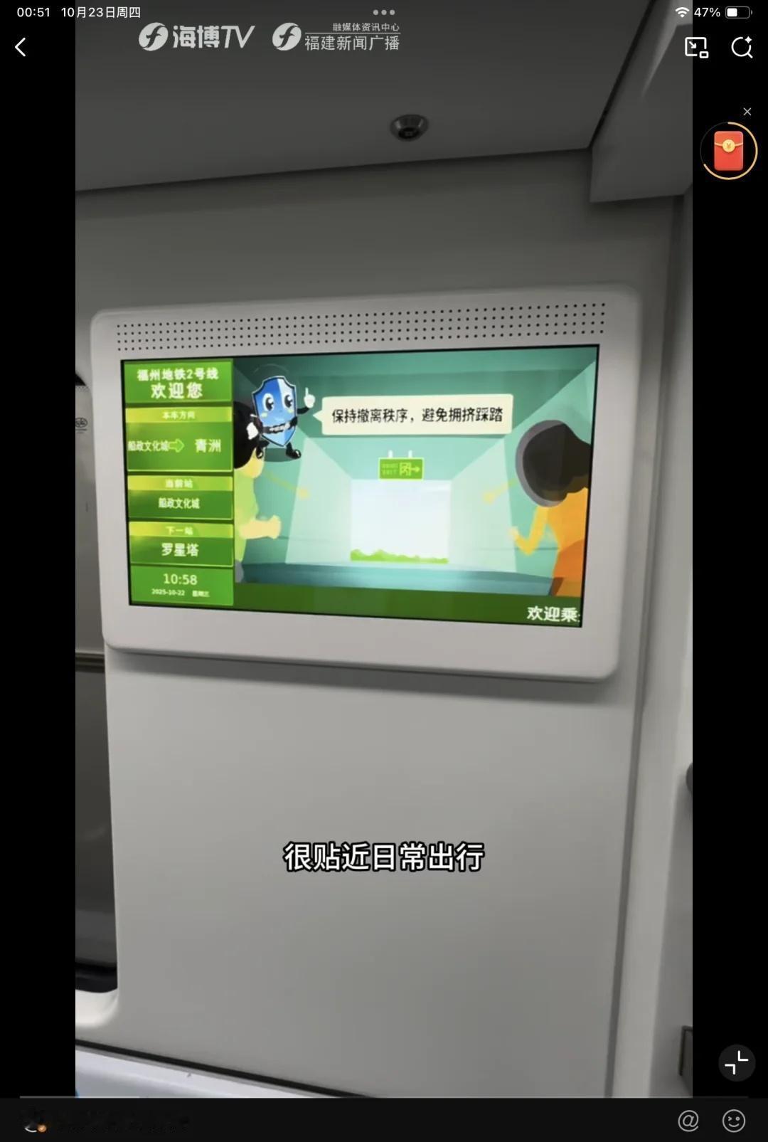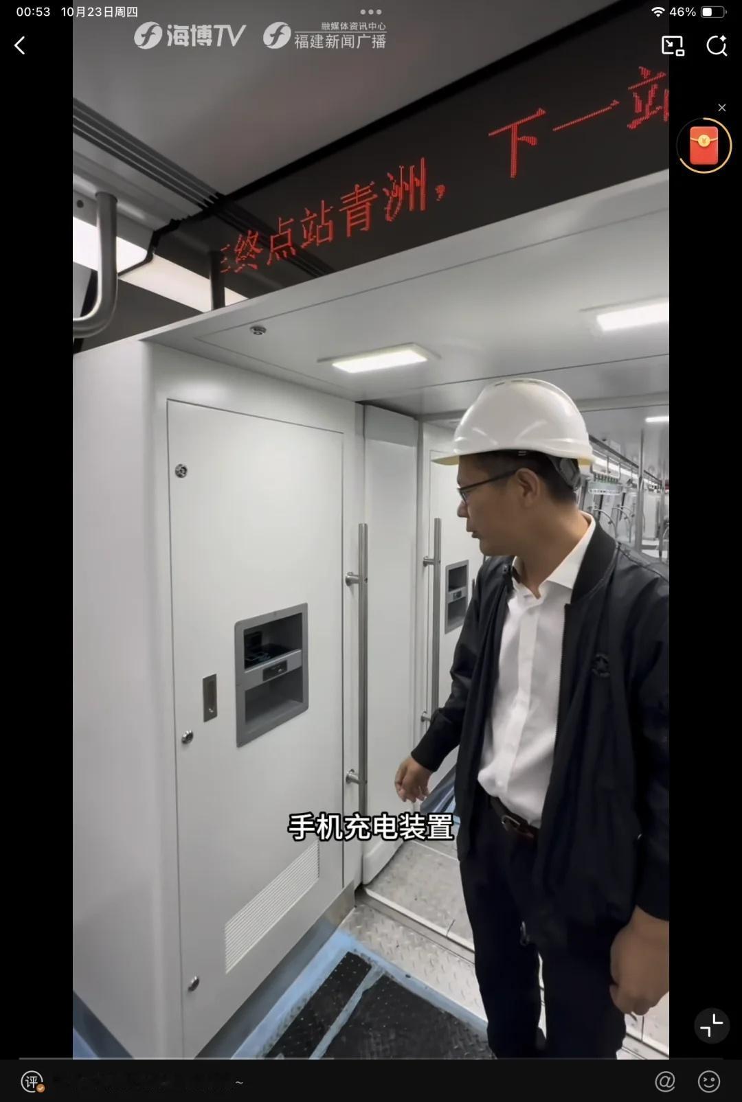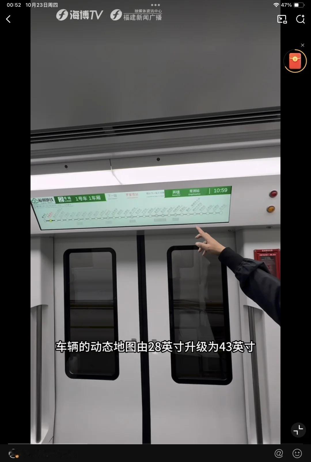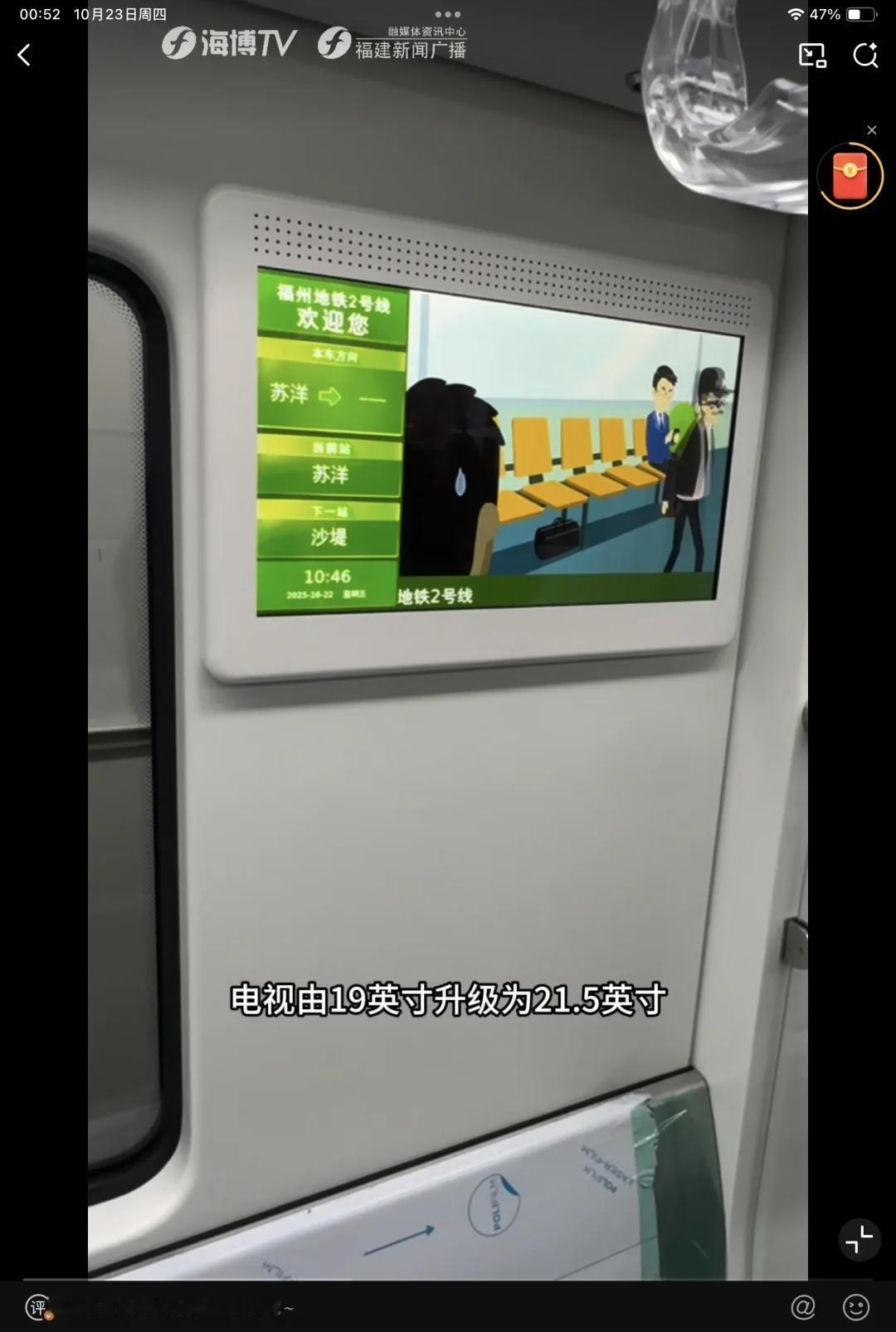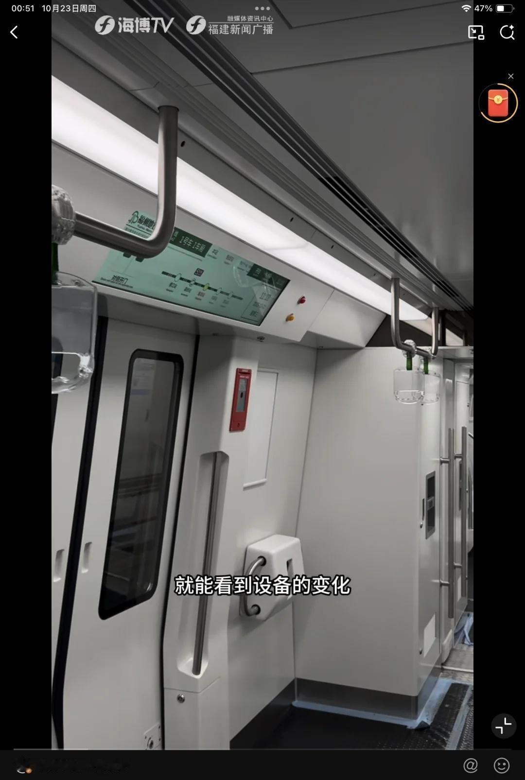 曝光!福州地铁2号线新车亮相!有大升级! 🟢图片截图源视频: @福建新闻广播fm1036 (侵删) ❗️目前图中、视频中所有信息均在调试阶段,仅供参考,不为列车实际上线运营后使用。 ✨福州地铁2号线东延线一期工程车辆采购项目首列电客车,顺利卸车于鼓山车辆段[惊喜],一共将有24列新车。 🔆福州地铁2号线增购新车较既有旧车升级点: ✅车厢客室门上方LCD动态地图屏幕由2号线旧车的28英寸升级⬆️至43英寸,让乘客更加直观观看站点变化及到站信息;屏幕大小及UI模版等与地铁4号线、5号线、6号线、滨海快线实现基本统一; ✅车厢信息屏幕(小电视)由2号线旧车的19英寸升级⬆️至21.5英寸; ✅新增手机充电装置于每节车厢连接处位置(贯通道),每节车厢共设置两处,可提供无线充电及有线充电,并可同时给三台手机进行充电,充电装置下方较滨海快线还做了“挖洞”升级,方便手机有线充电时放置;[蹲后续H] ✅每节新车还较旧车轻约3.8吨;车门开关将非常安静; ✅新车还搭载了一整套的“智能监测系统”,能够实时监测车辆的运行状态,大幅度提升了车辆智能化水平和安全运营品质。 ❔至于你肯定看到会问2号线新增购车身及车头为何没有做2号线色带等涂装及列车车号,猜测是到段后自己再进行贴装。 ——————————————————— ◉ ❗️本博为爱好者自制,内容仅供娱乐、不保证准确,本人非福州地铁官方,仅供参考❗️实际准确信息请关注@福州地铁 官方微博、公众号、视频号或抖音号福州地铁 轨道交通 地铁 福州 交通便利