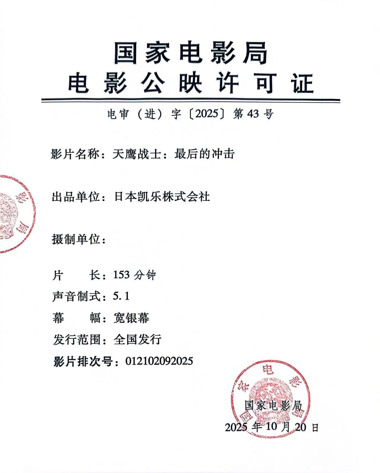 影讯 10.31 日本批片天鹰战士:最后的冲击 影片信息