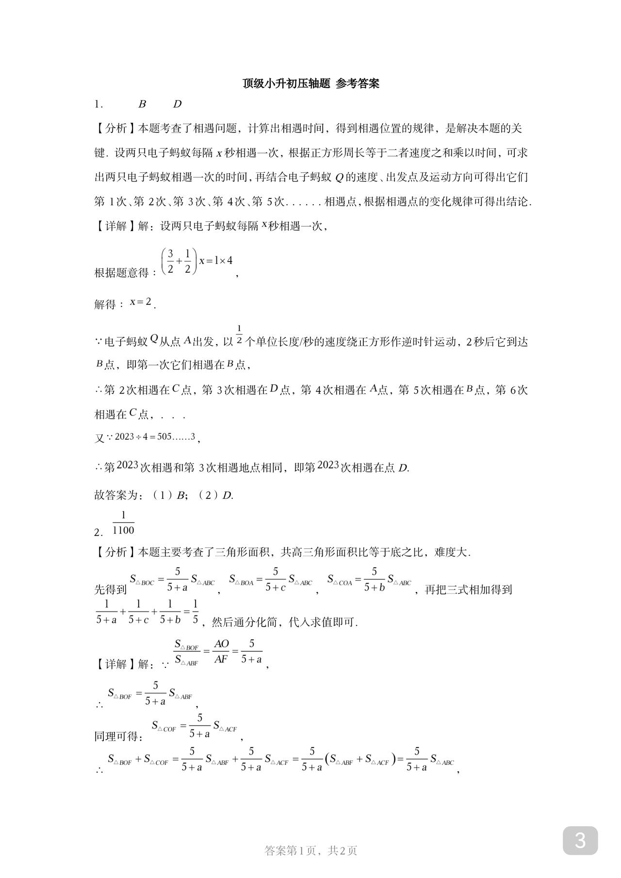小升初顶级压轴题 在近两年一众顶级名校MK当中 挑选五道有代表性的难题 供各训练参考 难题考查思维与灵活性 这五道题肩负挑选好苗子的任务 后五页答案详解