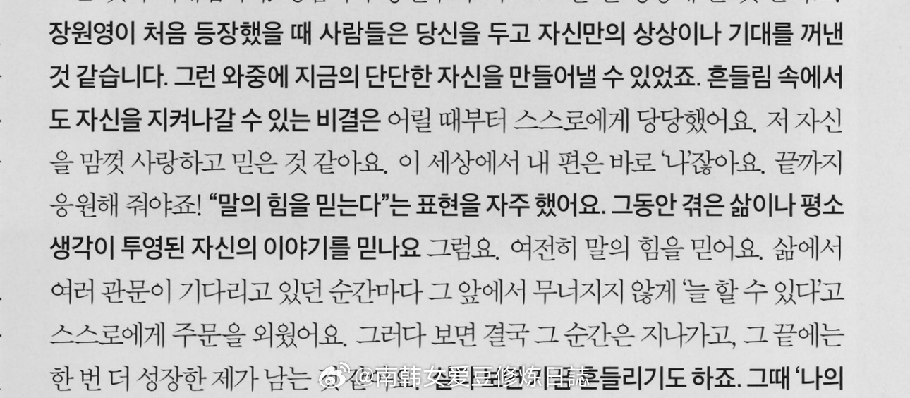 提问:张元英初次登场时,人们似乎对你投射了各自的想象与期待。而你在纷扰中坚持了坚实的自我,在动摇中守护内心的秘诀是?
