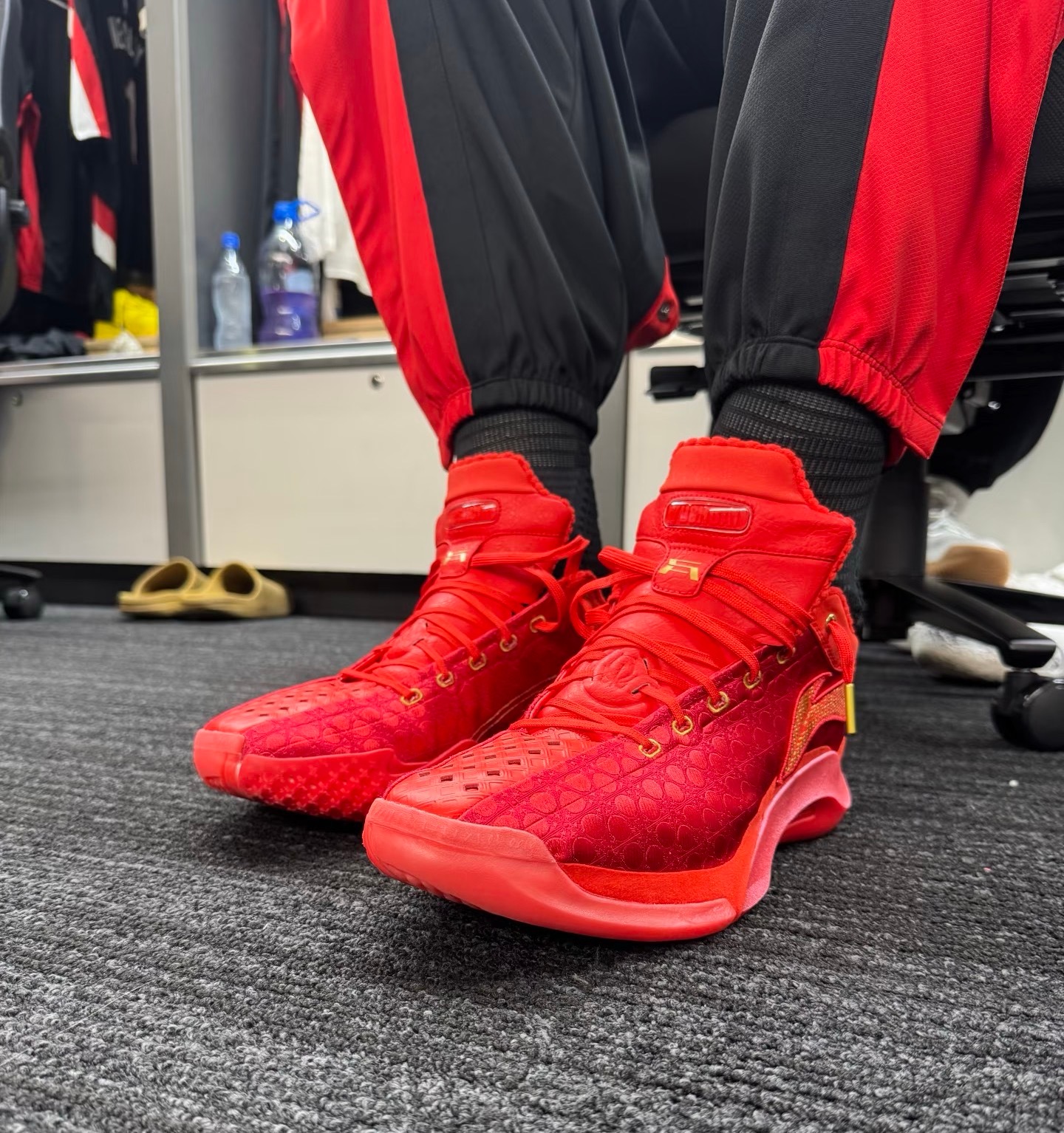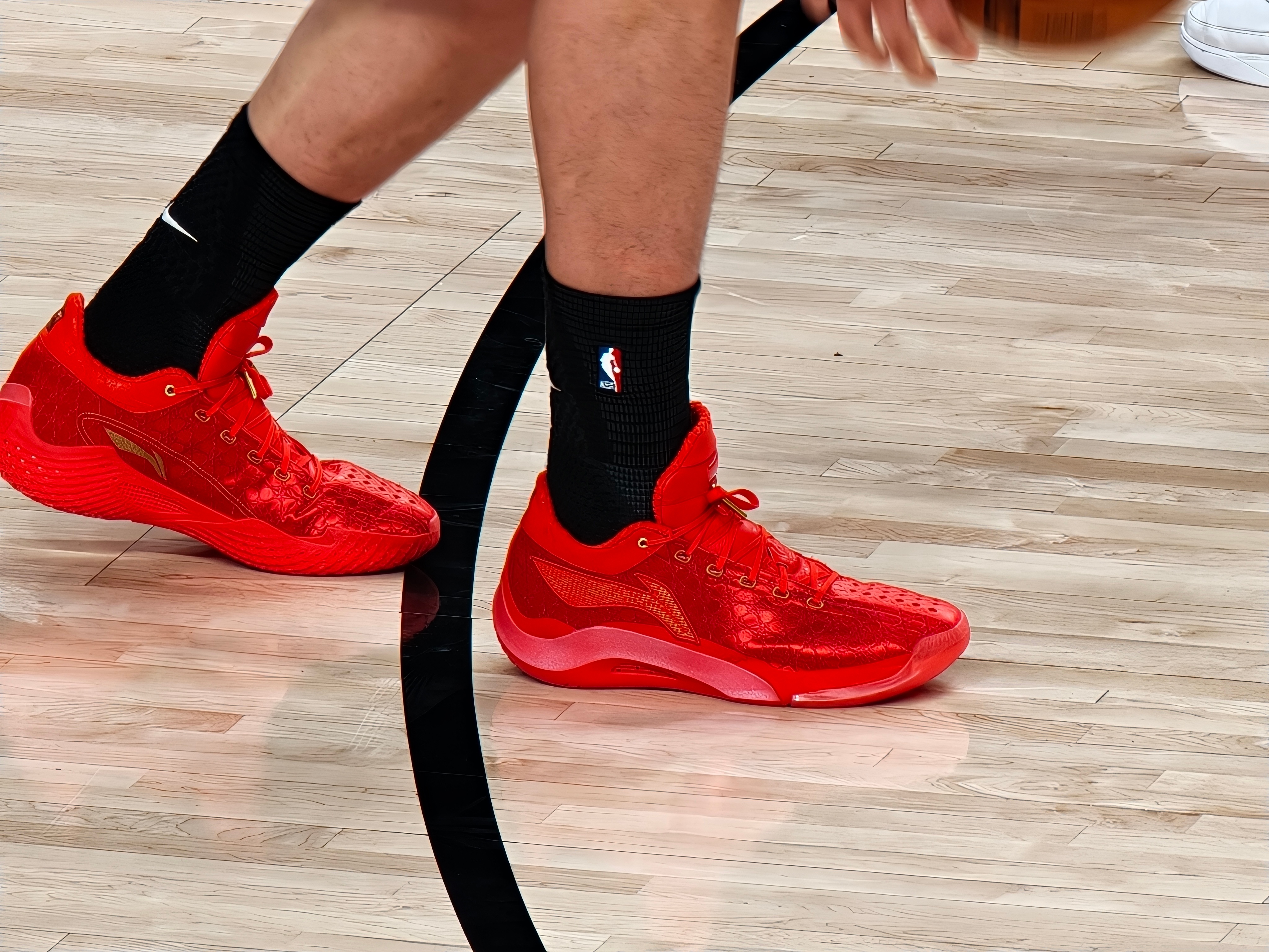 杨瀚森NBA常规赛首秀,穿着李宁驭帅 20“故宫”联名配色登场