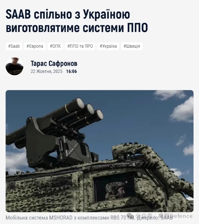 除此之外,乌克兰还将与瑞典萨博公司联合生产现代化近程机动防空系统。