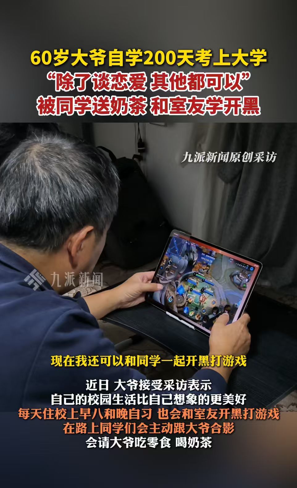 仔细研究了60岁上大学大爷和室友学开黑 的视频,发现大爷才是【真·装备党】!