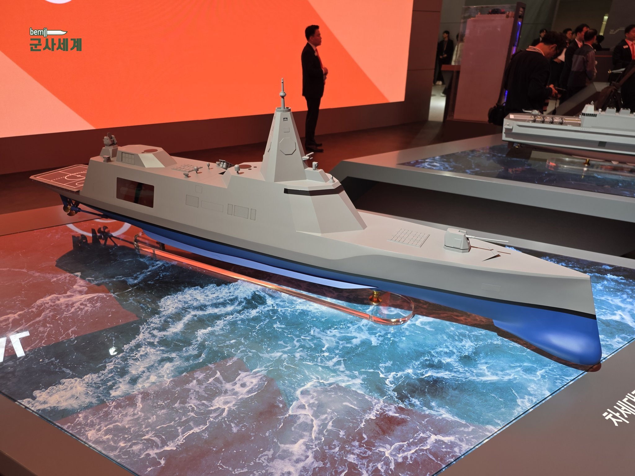 中外舰闻[超话] 烽火问鼎计划 韩国🇰🇷“韩华”公司(Hanwha)在ADEX 2025上展出的两款🆕水面舰艇的模型,HSC-2000导弹护卫舰?(图1,图2)和Ocean-74FN导弹驱逐舰?(图3和图4),目前曝光的信息很少,关于Ocean-74FN只知道高度自动化(仅有70名船员);具备AI集成的CMS系统;和上一代驱逐舰(KDDX?)尺寸大小基本相当;而对另一款更小的HSC-2000,则几乎一无所知。