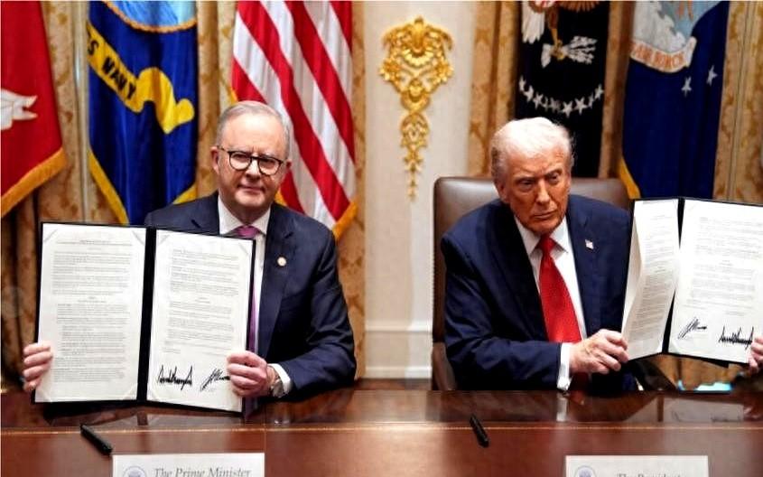 美澳签了个85亿的稀土协议?呵,纸糊的航母看着威风,一泡尿就塌。 特朗普在白宫拍桌子喊多到用不完?你信吗?我反正在酒泉基地那会儿,见过美国人运来的矿石堆在港口发霉不是没矿,是炼不出! 稀土这玩意儿,不是挖出来就完事。从矿石到磁铁,中间十几道工序,跟熬中药似的,火候差一秒,全盘报废。全球90%的精炼产能在中国,这不是运气,是两弹一星那代人玩命攒下的家底,是举国体制几十年磨出来的刀刃。 澳大利亚?储量第四?拉胯!矿挖出来还是石头,得送中国过劫就像生铁要进高炉,他们连炉子都没有。奥巴马时期就烧钱搞,结果呢?两家美国稀土公司直接破产,钱打水漂,不是一次,是连着十几年打水漂! 你说特朗普现在得意?那是演给华尔街看的。他前脚还在推特骂中国卡脖子,后脚就怂了喊谈谈。现在搂着阿尔巴尼斯演双簧,无非是想抬点筹码。可你懂那种感觉吗?就是明明被人掐着喉咙,还硬要吹自己呼吸顺畅…… 更逗的是,陆克当年骂他是破坏王,现在坐一桌,特朗普当面说我也不喜欢你。哈!盟友?利益没到账前叫兄弟,到账后翻脸比翻书快。 我猜下一步美澳这厂子建起来,设备一开,纯度不达标,成本贵到离谱,最后还得偷偷找中间商绕道买中国产的氧化物。不是我不明白,这世界变化快?不,是有些人装睡叫不醒。 快。准。狠?他们连准字怎么写都不知道。