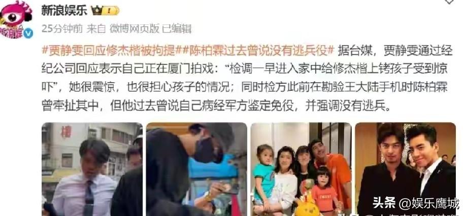 远在厦门拍戏的贾静雯,怕是没料到短短一天内,生活给她泼了盆冷水。丈夫修杰楷因2016年花15万台币买假病历逃兵役,和陈柏霖一同被捕,孩子们目睹父亲被带走哭得伤心。 她得掏50万台币保释金,家里开销全靠她拍戏撑着,广告商也开始观望。这让人想起她过去,从孙志浩那段婚姻净身出户,花2600万换回女儿监护权,如今孙志浩把50亿资产留给女儿,世事真是讽刺。 快50岁的她,还得在片场强颜欢笑。有人说她命苦,可她擦干泪继续前行的样子,不正是生活里的强者?日子再难,孩子要养,路还得走,这或许就是成年人的无奈与坚韧。贾静雯老公 贾静雯一家五口