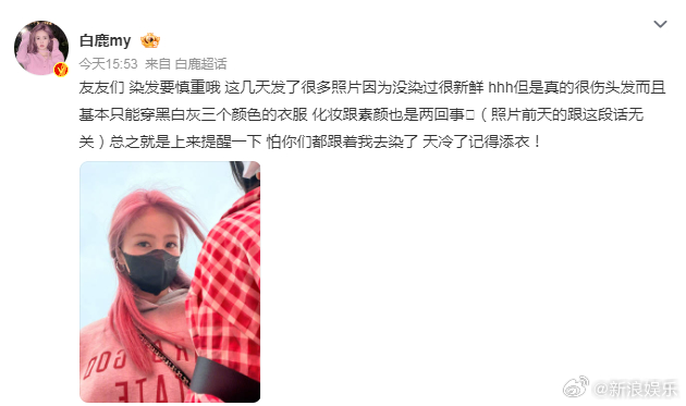 白鹿提醒粉丝染发要慎重http://weibo.com/1664000191/Qajms4hce