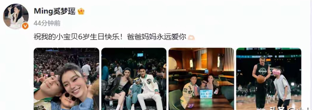 奚梦瑶晒全家合照为6岁儿子庆生 奚梦瑶通过社交媒体晒出全家合照 为儿子何广燊庆生 并且配文“祝我的小宝贝6岁,生日快乐!爸爸妈妈永远爱你”