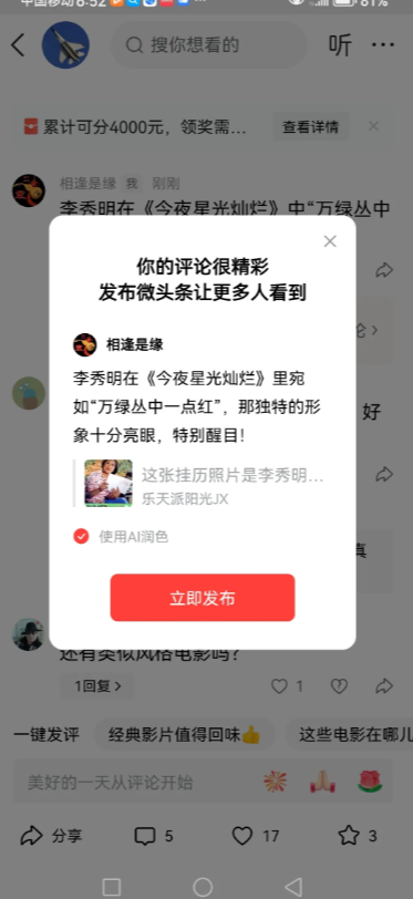 李秀明在《今夜星光灿烂》里宛如“万绿丛中一点红”,那独特的形象十分亮眼,特别醒目!