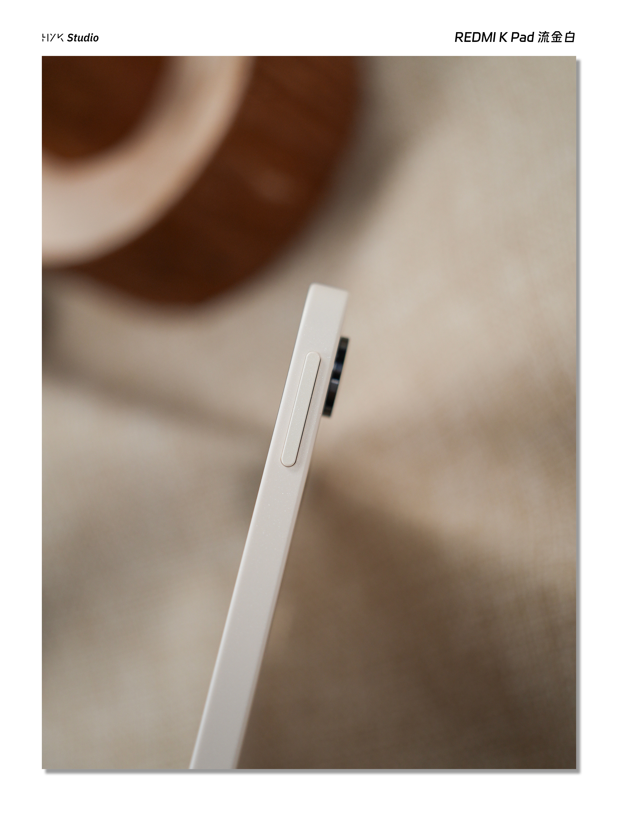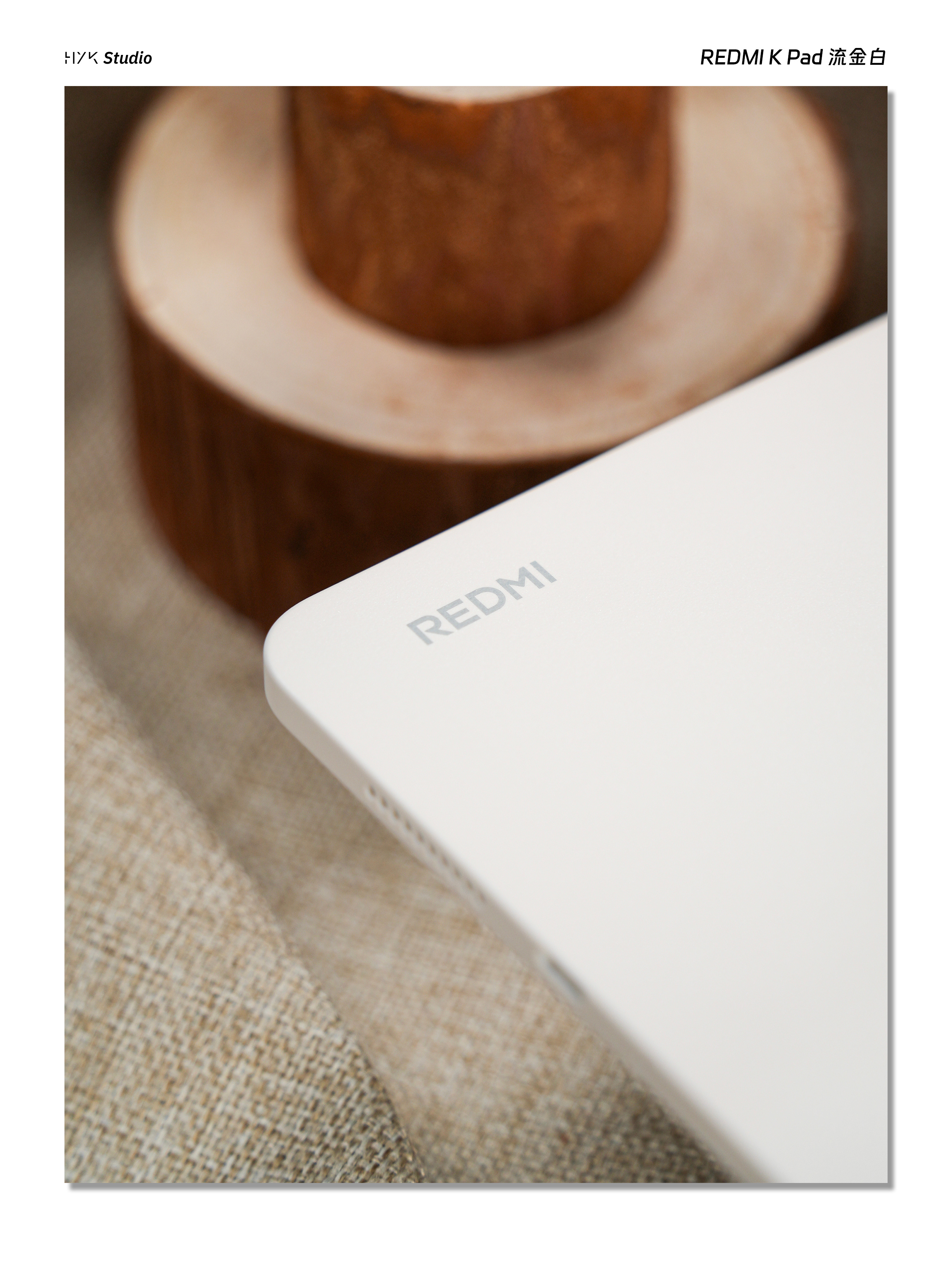 流金白配色,这是新推出的配色,8.8 英寸 3K LCD 屏,这个尺寸不仅单手握持很舒服,而且还能够享受大屏观感。REDMI K Pad还有超薄四音圈对称双扬和双X轴线型马达,双马达的震感反馈确实要比单马达更强,对称双扬也能带来更立体的听感,这个组合不管是打游戏还是刷视频都更强劲。背板采用金属漆喷涂工艺,金属喷漆能够更大程度隔绝机身与外界空气、水汽的接触。漆面材质是超细纳米级云母颗粒和金属颗粒,摸起来细腻的同时看起来也更有层次感。这款更耐用更好看的流金白配色,你喜欢吗?KPad新配色流金白