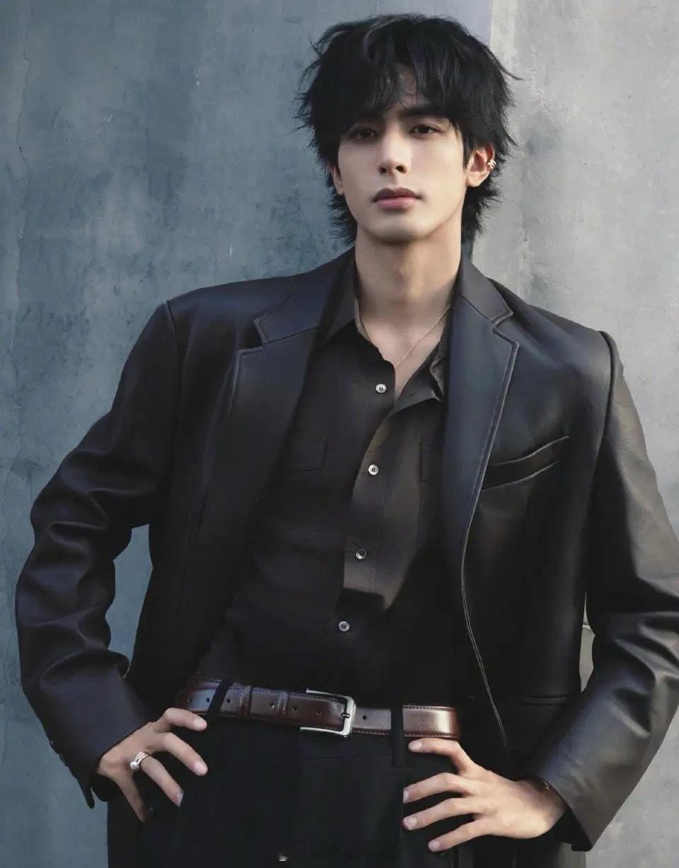 宋威龙一身棕色皮衣搭配小卷毛,依然是无可挑剔的完美脸蛋和身材。