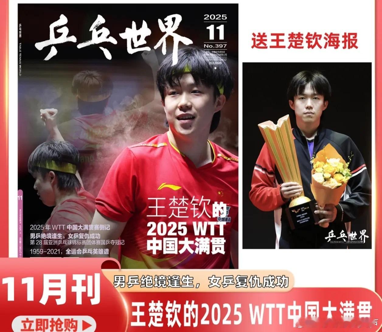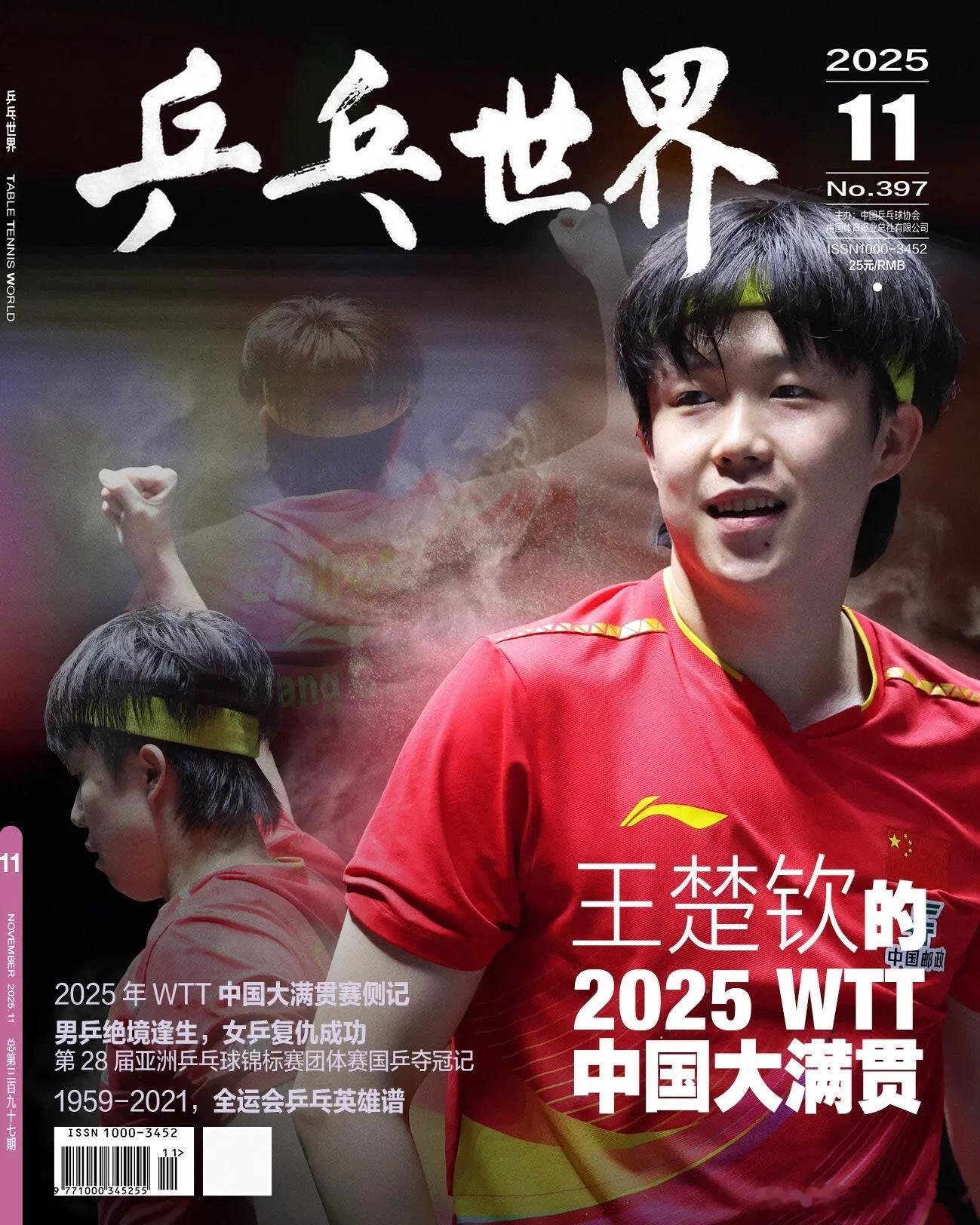 国乒团队登上中国体育特刊王楚钦以2025WTT中国大满贯的热血表现,登上《乒乓世界》11月刊封面,附赠王楚钦冠军海报 乒乓世界 杂志封面 wtt中国大满贯