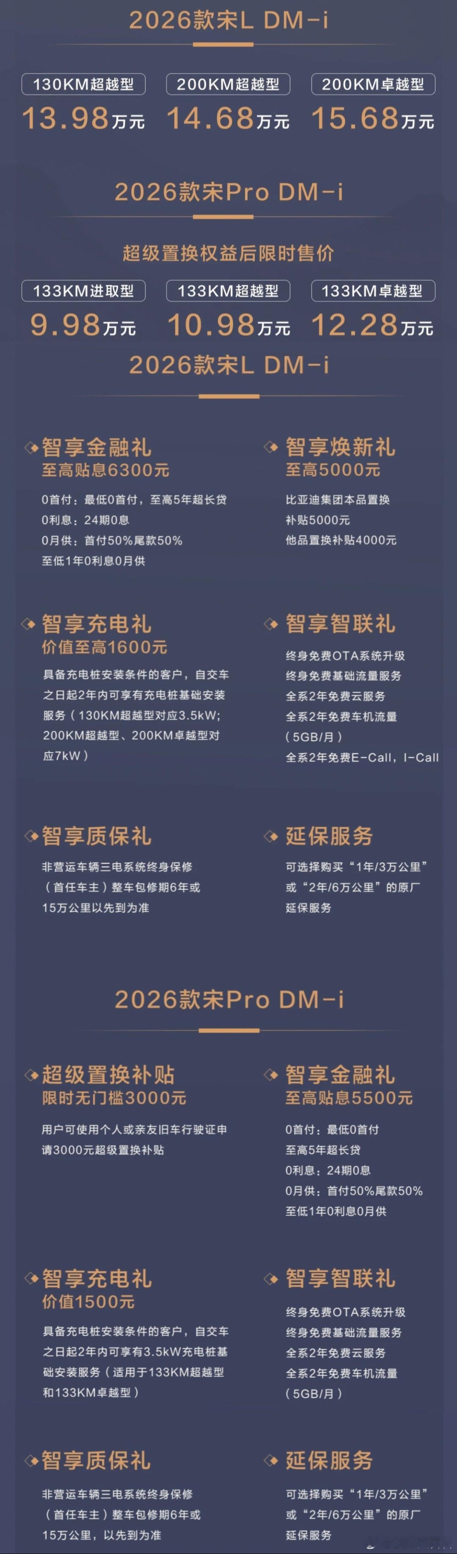 2026款宋ldm-i ,全系3款车型,售价13.98-15.68万元,置换补贴本品5000/他品4000