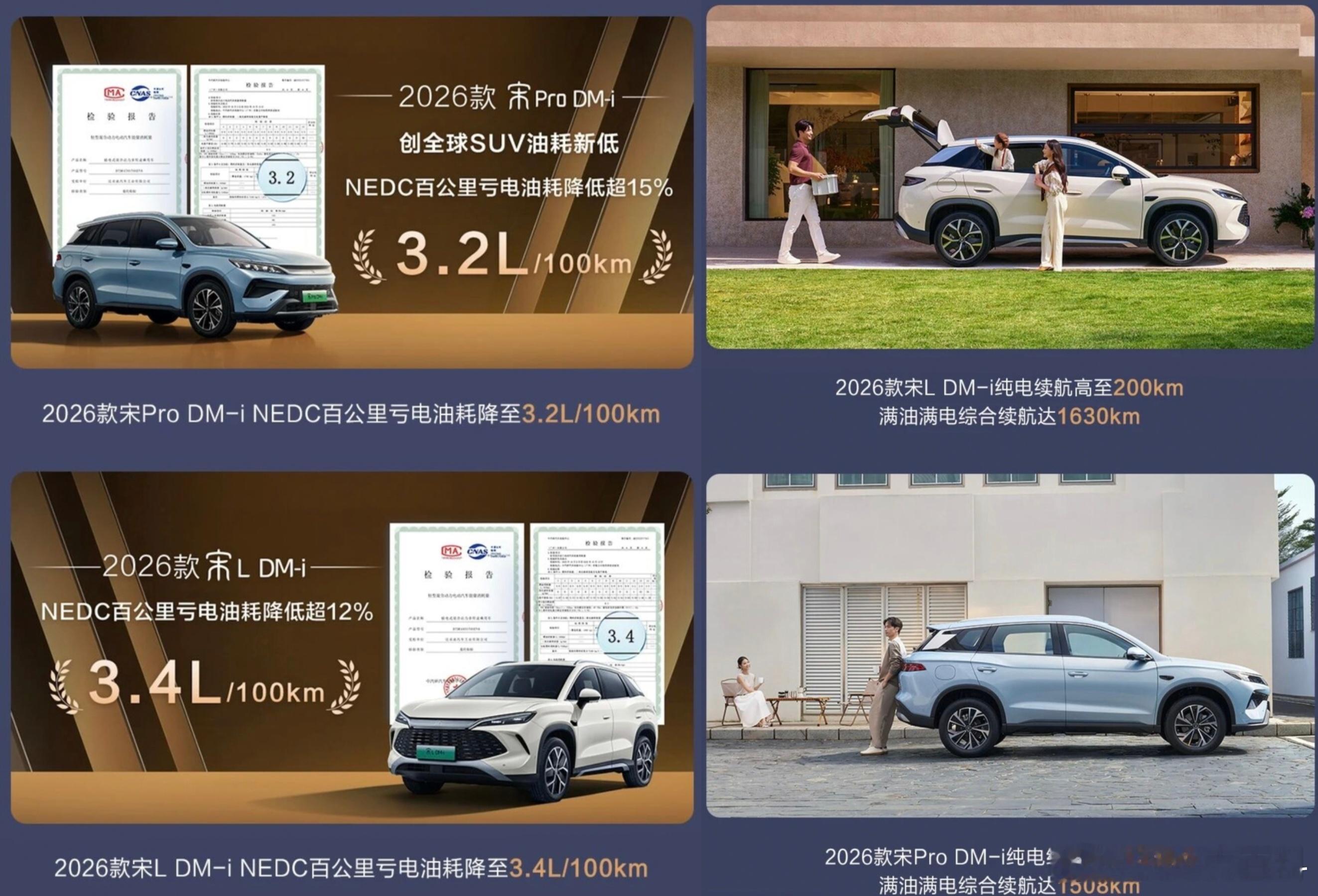 动力与115/160km一致,但电耗从15.9-16.8kWh/100km降至15.5-16.4kWh/100km,纯电续航小幅增至130/200km,综合续航1630km,NEDC亏电油耗从3.9-3.93L/100km降至3.4L/100km
