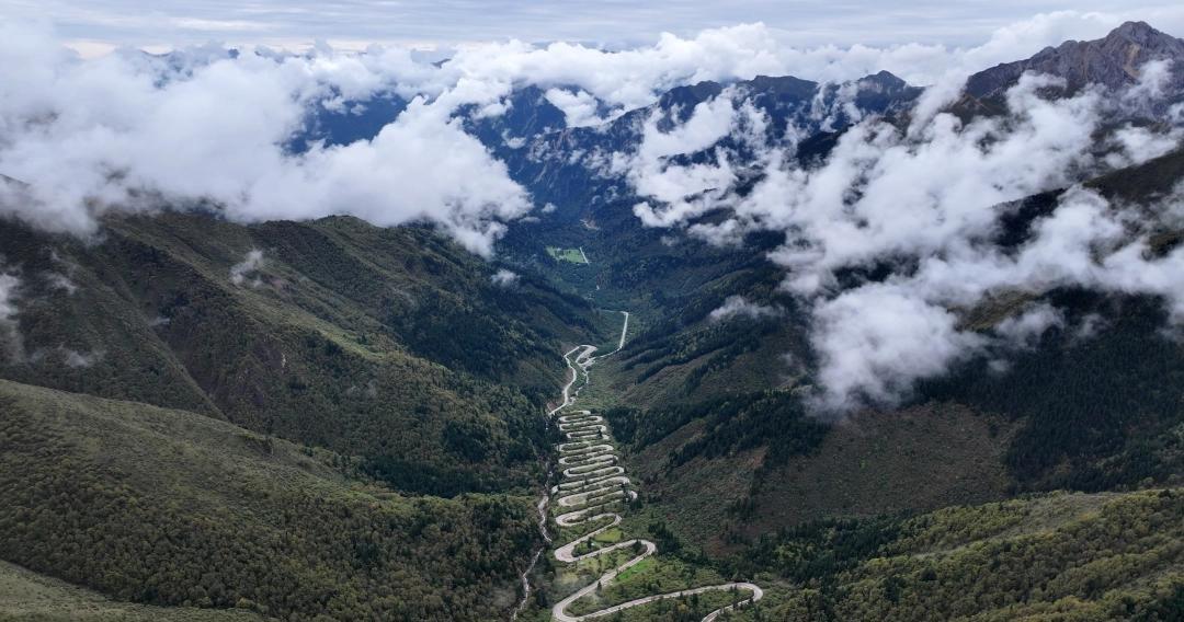 【美图分享】四川省阿坝州,在九寨沟至神仙池的云雾深处,隐藏着一条wan蜒的天路——“神仙池28道拐”。它全长60公里,翻越4000米的雪山之巅,以28个完美的回头弯,在大地上勾勒出最为动人的曲线。(摄影:杨楹)