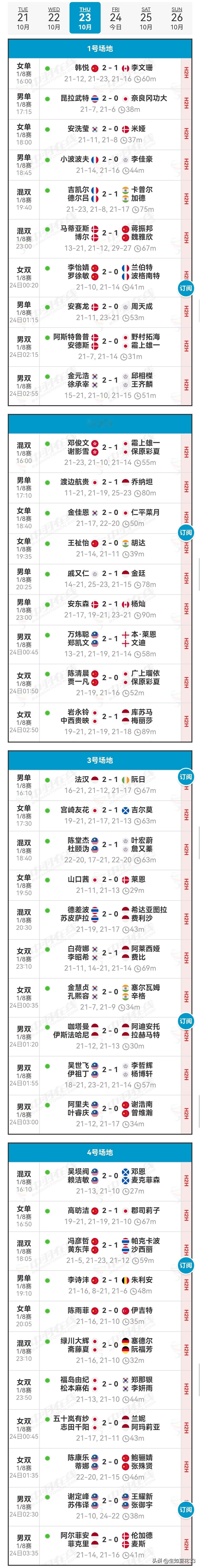 24日赛程及23日赛况2025年法国羽毛球公开赛 24日,法国羽毛球公开赛来到1/4决赛,国羽共有8场比赛。男单,李诗沣对阵日本的渡边航贵,李诗沣已取得3连冠。女单,两场硬仗,陈雨菲对阵小马达山口茜,高昉洁对阵眨眼妹安洗莹,王祉怡对阵金佳恩,小王能否复仇在中国大师赛的失利?韩悦对阵宫崎友花。陈清晨贾一凡对阵陈康乐/蒂娜。国羽其他场次及详细赛程如图1所示! 23日,国羽8胜3负。李诗沣2-1朱利安,4场女单全胜,女双,凡尘和萝莉携手晋级,混双冯彦哲黄东萍2-1战胜帕克卡波/沙西丽。蒋振邦/魏雅欣爆冷,21-13,12-21,27-29被丹麦选手马蒂亚斯/博尔逆转,无缘8强。独苗谢浩楠/曾维瀚0-2不敌阿里夫/叶睿庆。新组合鲍丽婧/张姝贤0-2陈康乐/蒂娜。 安赛龙2-0周天成,与队友安东森会师。详细赛况如图二所示