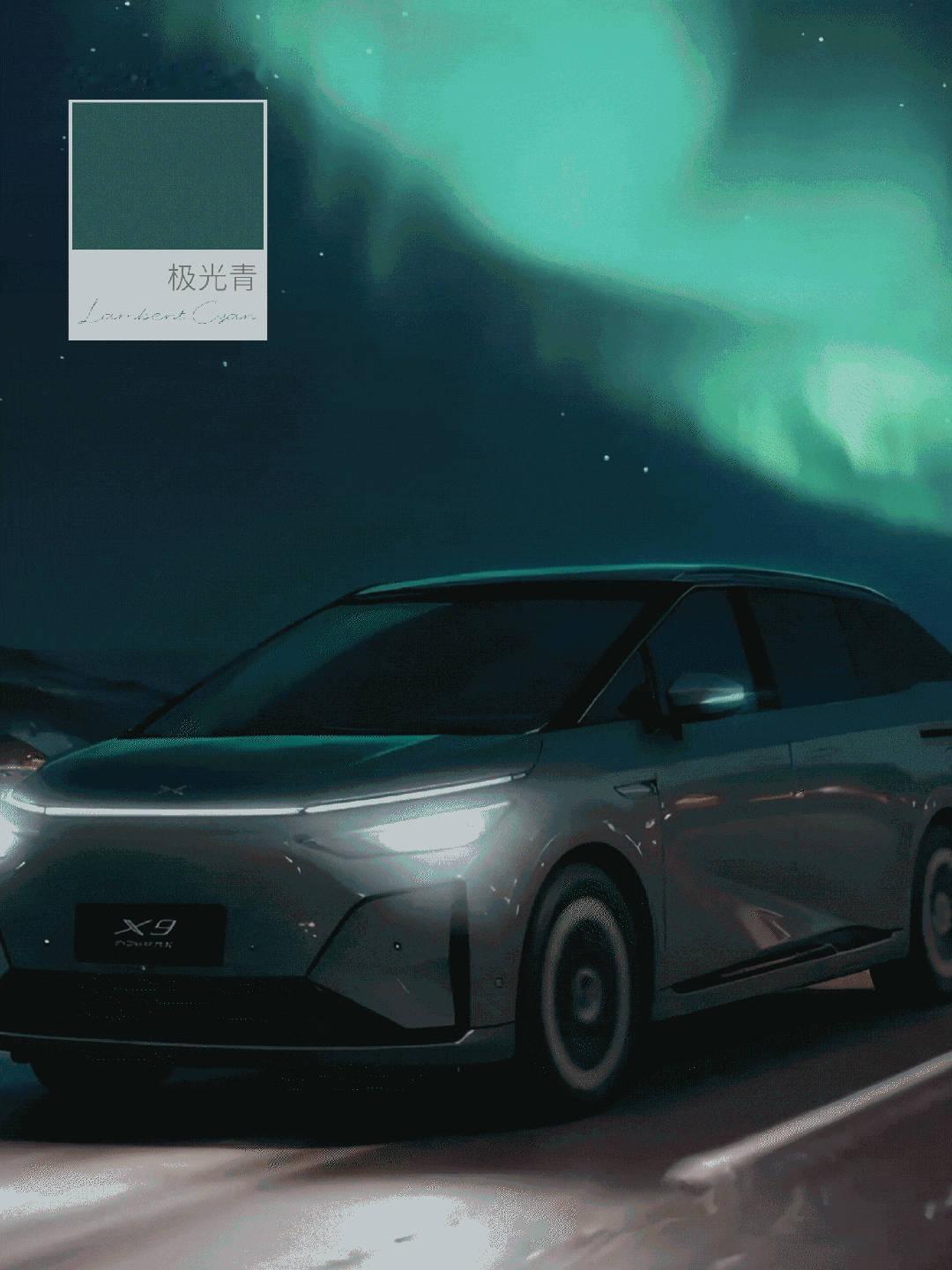 小鹏X9首发新色极光青小鹏 X9 超级增程新色——极光青 。这颜色挺特别的,大家