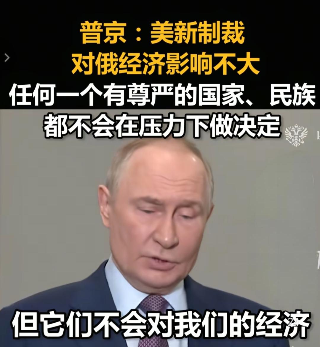 普京说,美国的制裁对俄罗斯不会造成重大的影响,任何一个有尊严的国家,民族,都不会在压力下做出决定。 之前扎哈罗娃也表示,俄罗斯已经对西方的制裁“免疫”了,俄罗斯将继续推进经济发展。 他们说的还真不是大话,西方国家对俄罗斯的大规模制裁从2014年就开始了,在这11年时间里,俄罗斯的经济不但没有崩溃,在最近几年却挤到了前十的位置,尤其是2024年,俄罗斯排到了第四的位置,把那些西方国家都挤下去了。西方国家对俄罗斯的制裁已经是方方面面都有了,而且俄罗斯需要的产品有其他可提供的国家,对俄罗斯的影响还真的不大,因为俄罗斯也是有朋友的。即使是俄罗斯的对手,俄罗斯的石油和天然气也是那些对手的必需能源,他们只不过通过第三方购买俄罗斯能源而已,俄罗斯也没多少损失。西方国家对俄罗斯的制裁只能说不痛不痒,没多大影响。