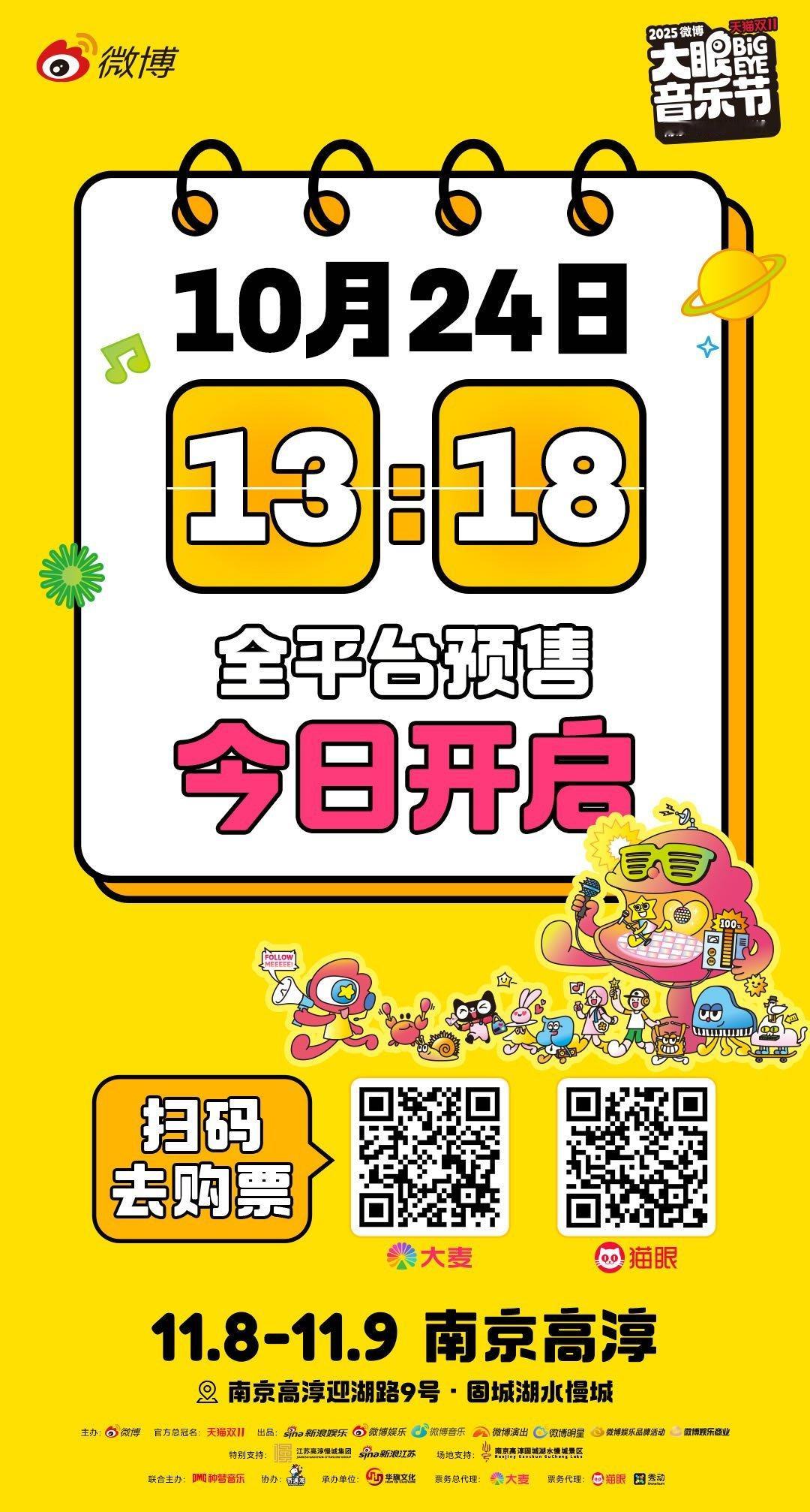 谁的心跳已经跟着倒计时狂飙?大眼音乐节预售倒计时 10月24日13:18门票开启预售,抢到就是赚到的快乐,要在现场用合唱、荧光棒和沸腾的氛围,续写今年最燃的记忆! 拼手速的时候到了,冲就对了!