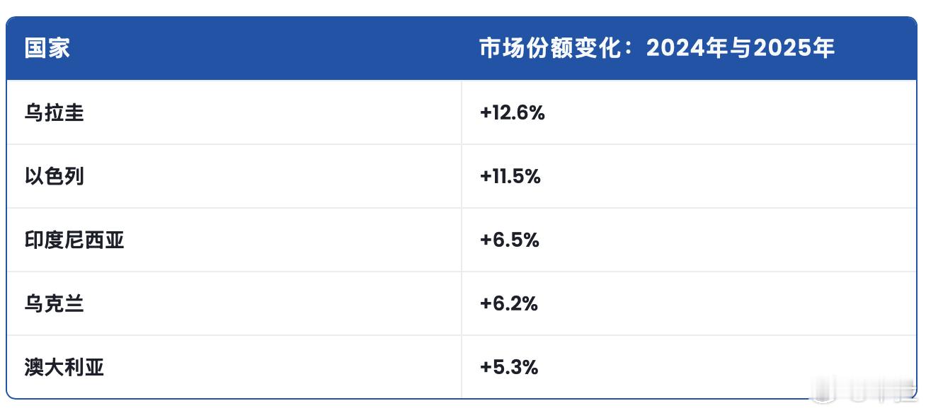 在乌克兰,丰田和雷诺的市场份额已被比亚迪蚕食。比亚迪的市场份额从3%增长至7.7%。拉丁美洲和亚洲也呈现出类似的趋势。在智利,雪佛兰的市场份额正被长城和长安蚕食。在哥伦比亚,比亚迪已进入前十,挤下了福特;而在印度尼西亚,比亚迪则攀升至第六位。