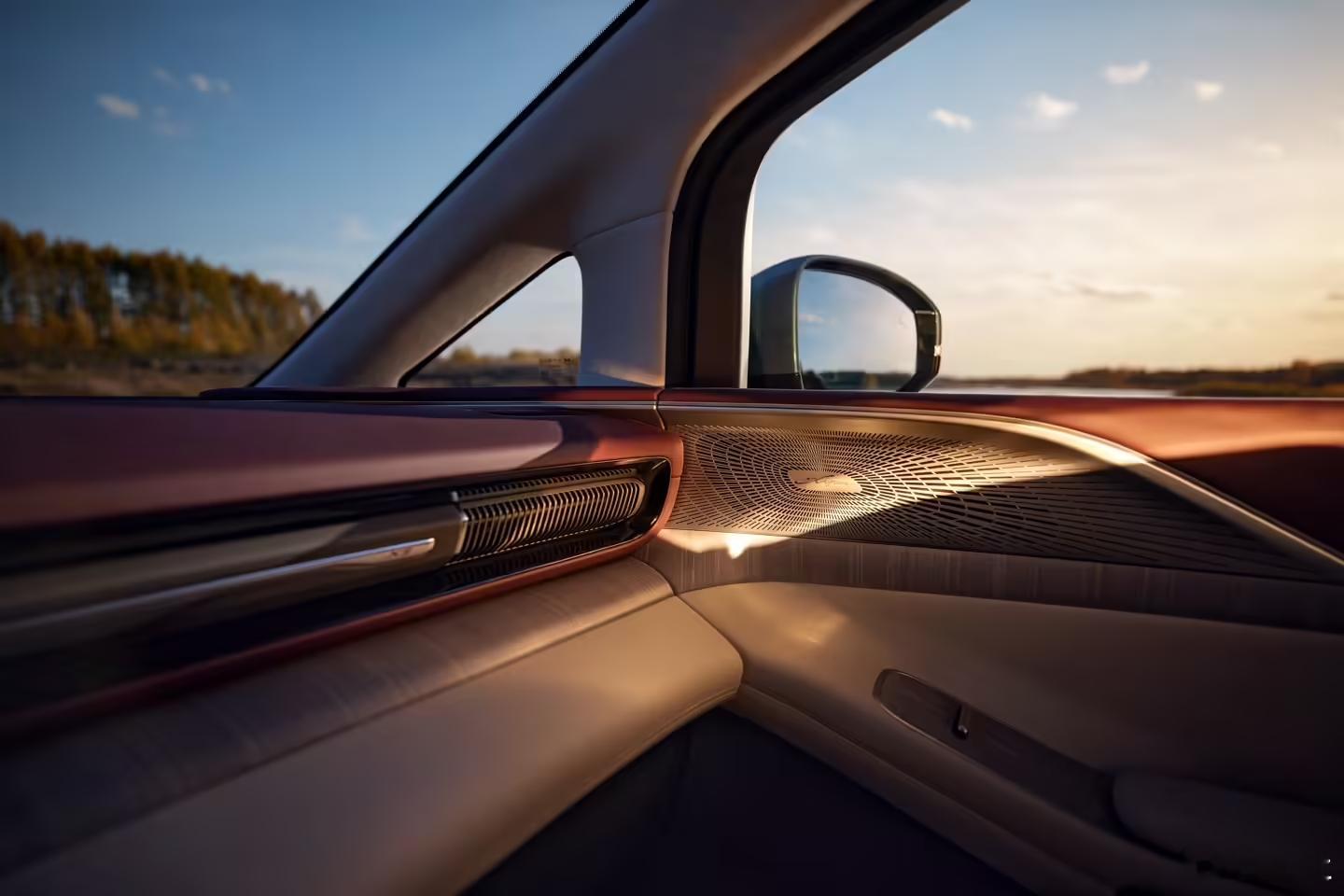 内饰新增 “云间玫棕” 配色,采用 100% 全软包覆与 4.2 米进口阿尤斯真木饰板;穹顶星轨氛围灯联动 AI 航空阅读灯打造 “移动星空舱”,方向盘 “星舰领航”、扬声器 “水滴涟漪” 设计融合科幻与实用。​
