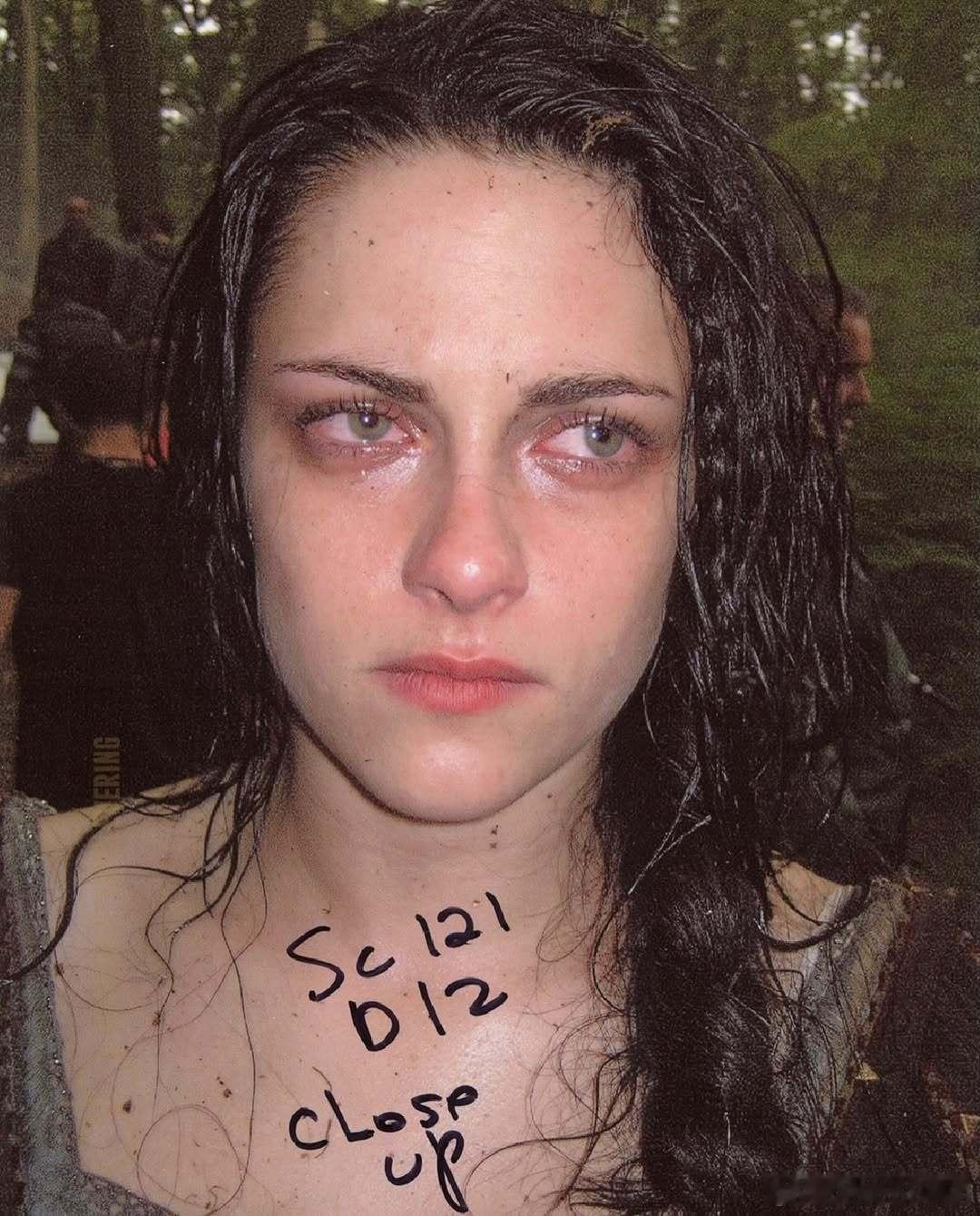 Kristen Stewart克里斯汀斯图尔特在《白雪公主与猎人》的片场,图2是个破碎宝宝[伤心]