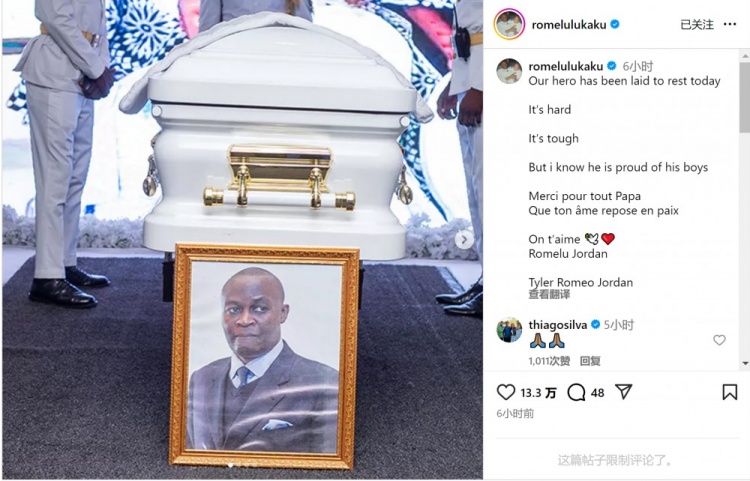 卢卡库的父亲罗杰-卢卡库于上个月去世,享年58岁。卢卡库社媒发布葬礼照片,配文:“我们的英雄今天已安然长眠。难忍其痛、难承其重。但我深知,他以他的孩子们为荣。