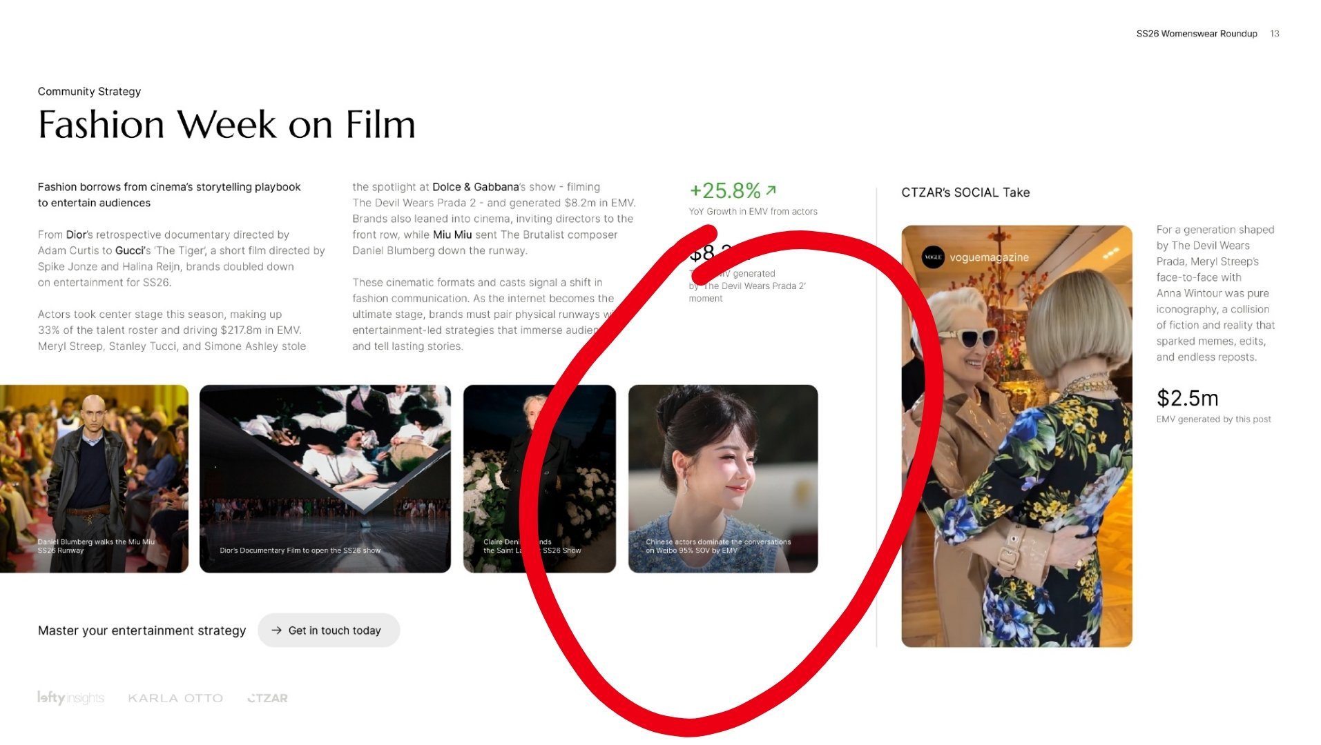 lefty更新了ss26的报告——其中提及全球品牌大使在时装周期间创造了中国明星