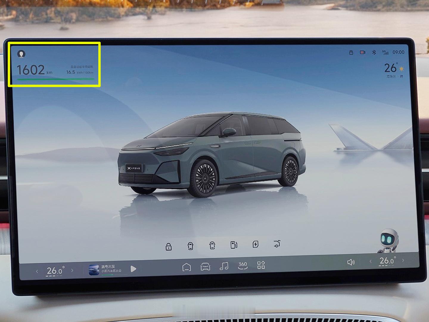 小鹏X9增程版内饰来了,屏幕显示1602km综合续航