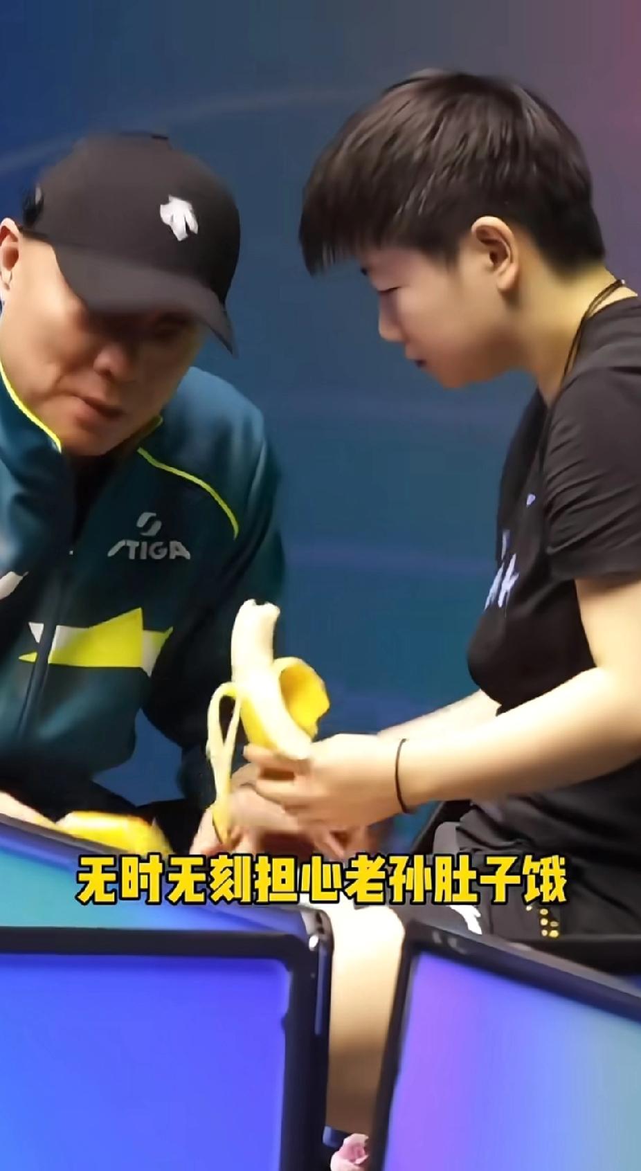 有一种师徒情叫“老孙”和“老杨” 谁能不爱这样的师徒!杨广弟喊孙颖莎“老孙”,孙颖莎叫他“老杨”——这称呼里的亲近,早把师徒处成了家人。 赛场上怕“老孙”肚子饿,私下里会亲昵揪她脸蛋,镜头里笑到眯眼的同框,是赛场外最暖的羁绊。 从训练到生活,这种不是亲人胜似亲人的陪伴,才是竞技体育里最温柔的底色啊~ 孙颖莎 杨广弟