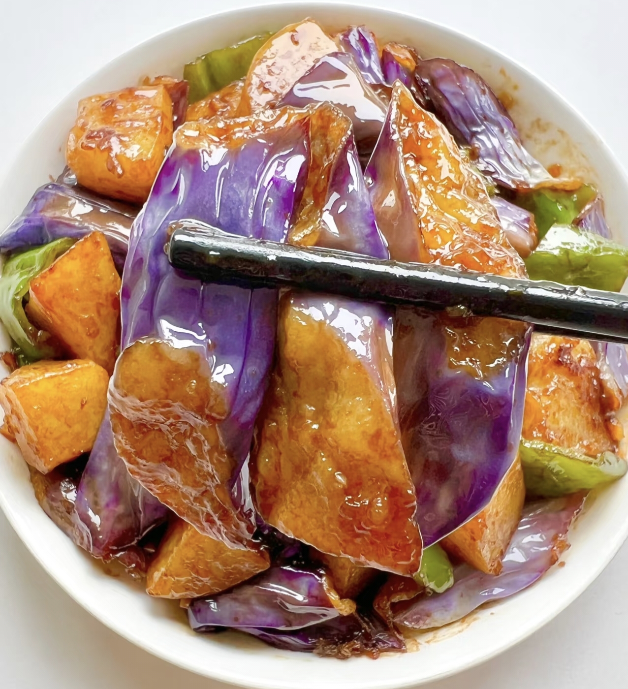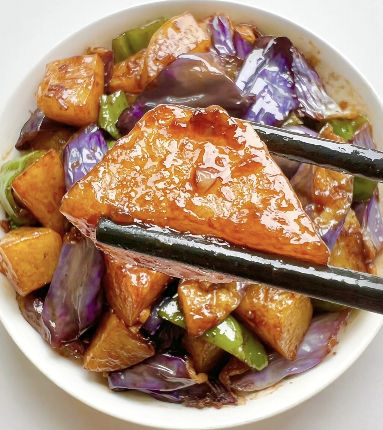 这道菜最神奇的地方在于,明明没放肉,却比肉还香!茄子吸饱了酱汁,土豆软糯得像布丁,青椒脆生生地解腻,三重口感在嘴里开派对,配上一碗冒着热气的白米饭,哎呀,这不就是传说中的“幸福暴击”吗?