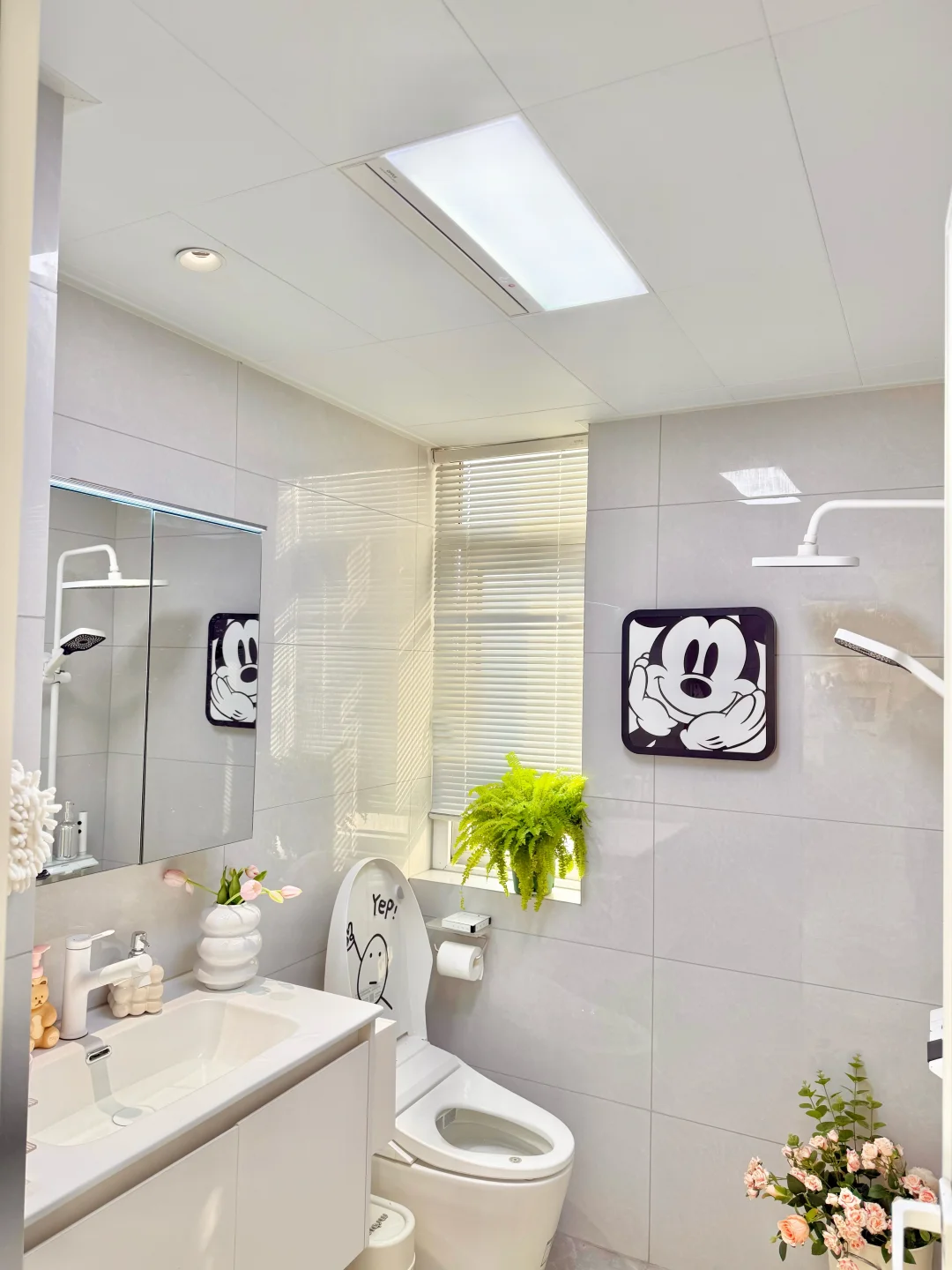 直到入冬前换上欧普Magic AI人感智能浴霸,才算真正解锁了从头暖到脚沐浴体验!8cm的纤薄机身装在小浴室里也不压抑,纯平设计和天花板融为一体,颜值直接拉满!