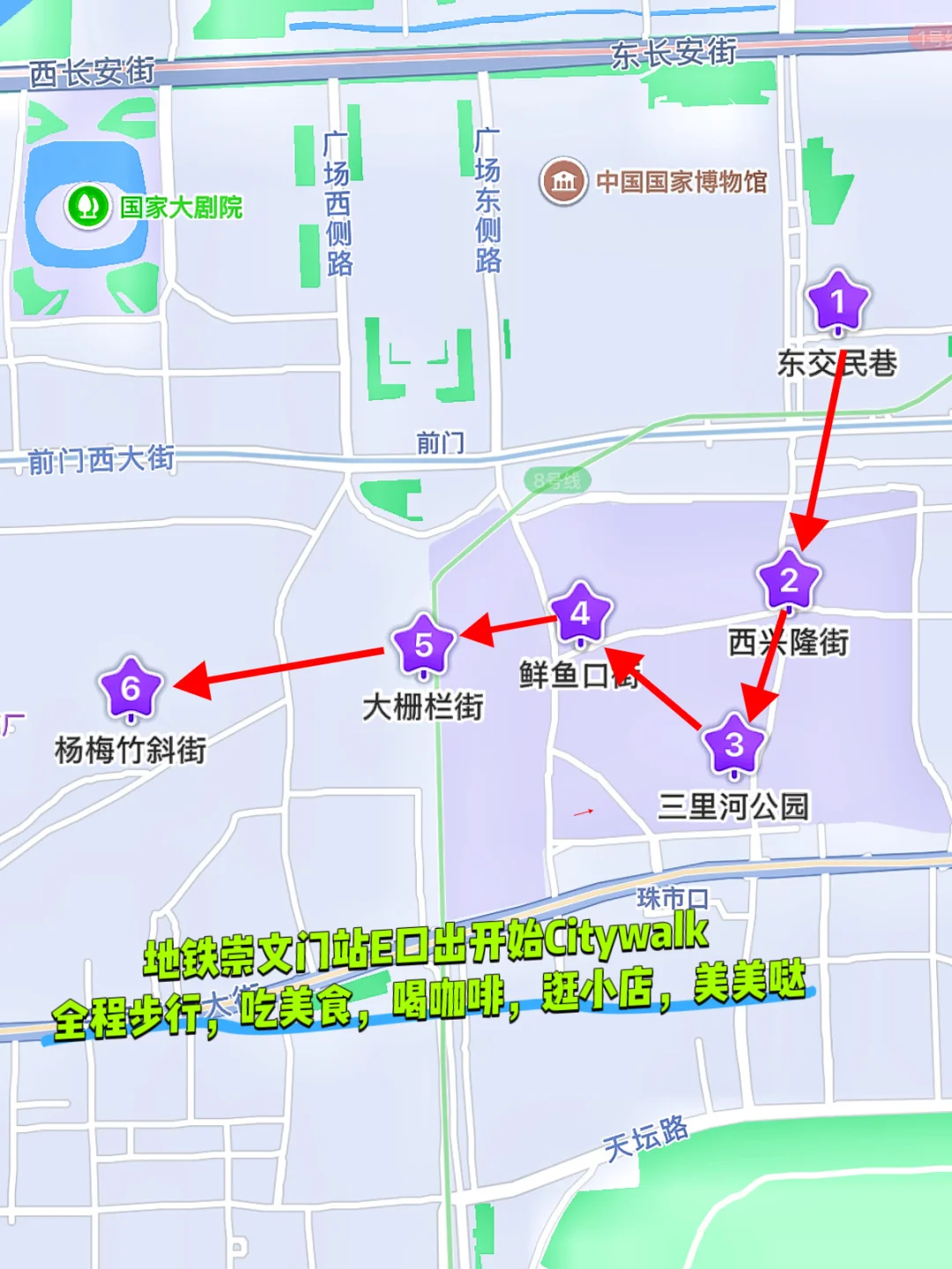 ✨地铁崇文门站E口出,全程步行可达,吃吃美食,喝喝咖啡,逛逛小店,边走边拍超惬意