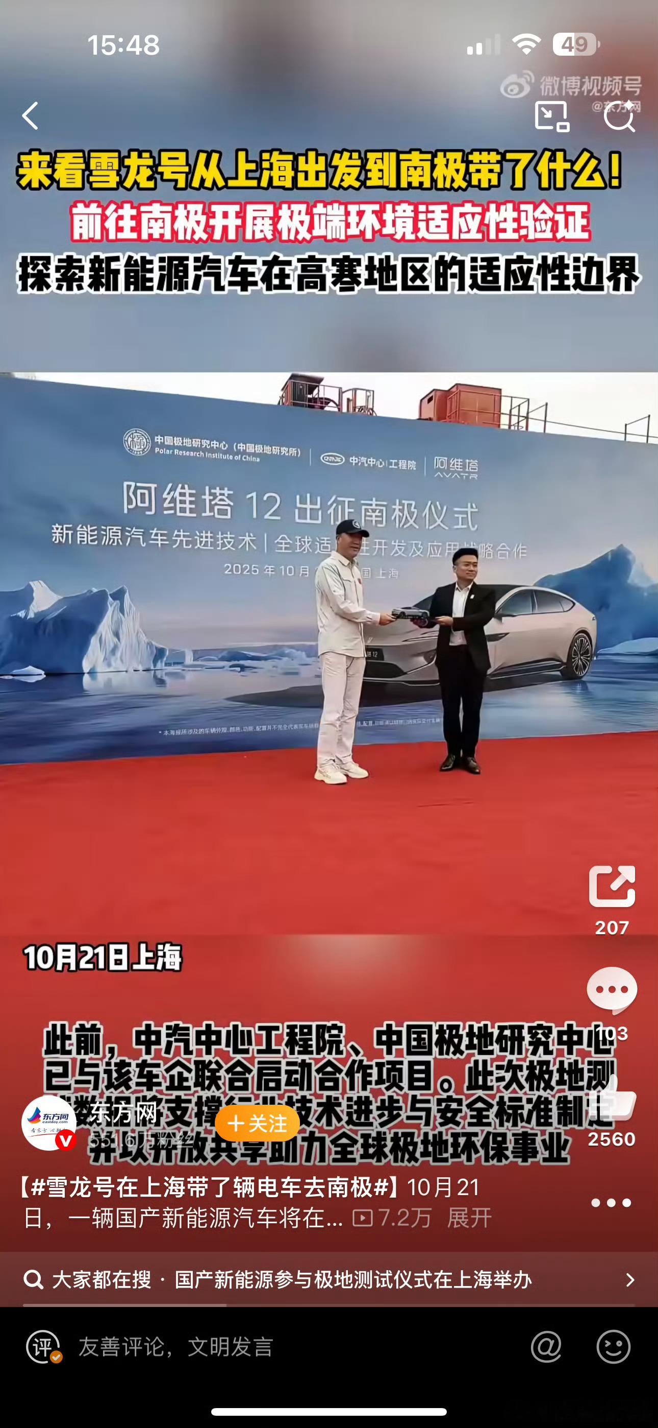 雪龙号在上海带了辆电车去南极雪龙号护航,阿维塔出征,这波操作真的太亮眼了。