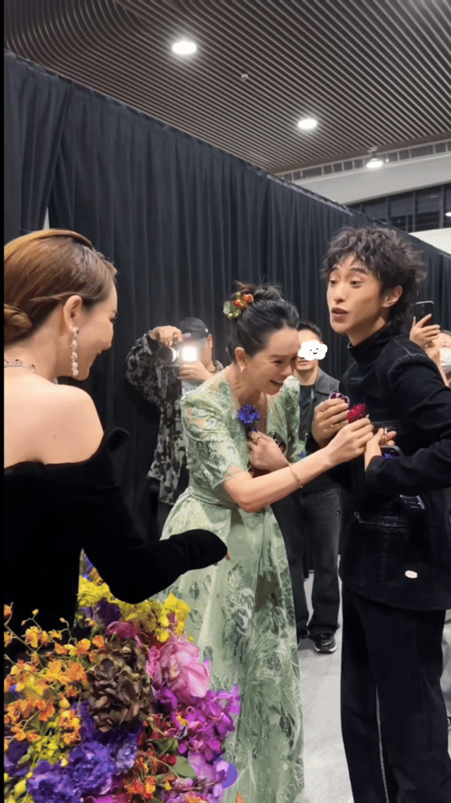 伊能静恩利拔戚薇的花 伊能静和恩利见到戚薇时,先是热聊,然后目光就被那朵花牢牢锁住。礼貌问能不能摘,戚薇点头后,两人立刻上手,这一连串操作把现场气氛直接拉到最高点,欢乐值满分。