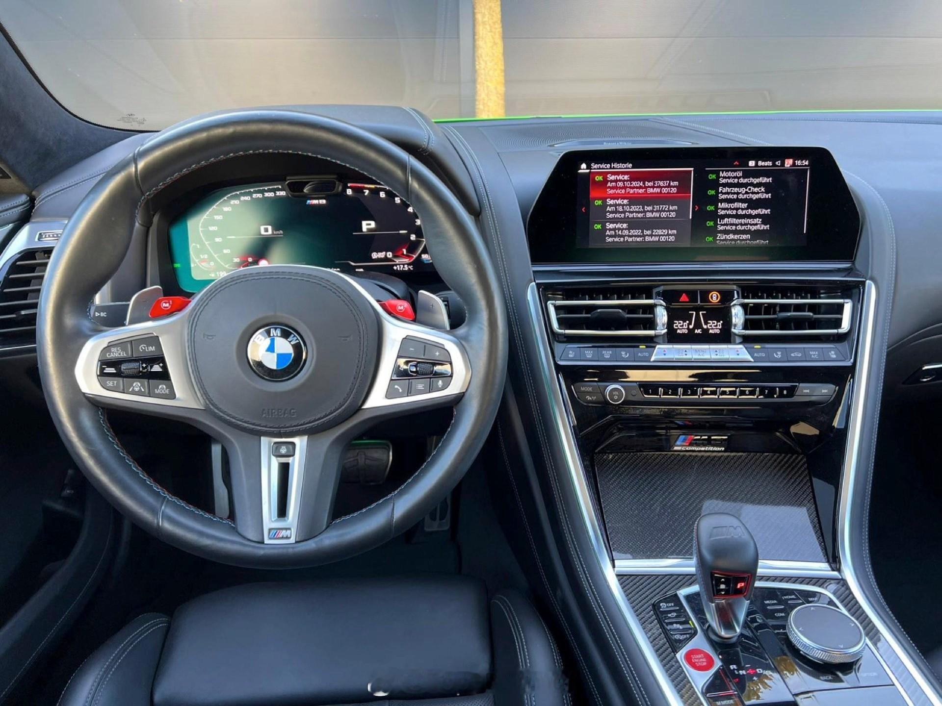 相比于外观,这台宝马M8的内饰颜色是比较低调的,就是普通黑色的Merino真皮,这种材质在当前宝马体系内科不多见了吧?很多中高档车型都换了仿皮或者其他什么环保材质。