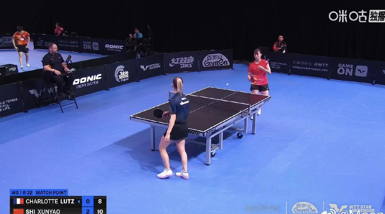 石洵瑶🇨🇳连胜两局了[笑哭], 前两局石洵瑶🇨🇳11-3,11-4连胜夏洛特·卢茨🇫🇷 , 石洵瑶状态火热,手感绝佳,对手几乎没有还手之力,只能疲于应付。 今天法国卢茨姐妹🇫🇷都上场了,姐姐刚刚和覃予萱对阵,被蘑菇横扫了,这一场的夏洛特·卢茨🇫🇷 是妹妹,看来也是被横扫碾压的命数。 好!石洵瑶再传捷报,第三局石洵瑶11-8拿下,从而3-0横扫夏洛特·卢茨🇫🇷 ,晋级WTT球星挑战赛伦敦站女单16强!