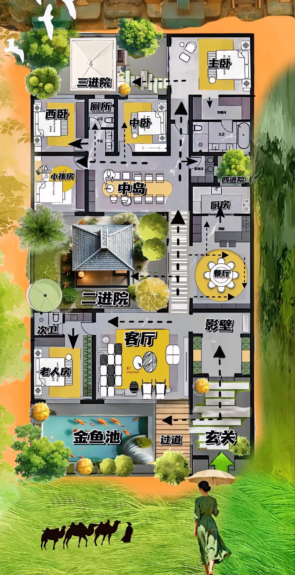到底该咋理解合院这东西?流行不一定对,真像是450㎡硬扛四合院的标准,自建房的初心,最动人通透,且有七分意境! 三十米长的院子,简直是自建房的一股清流,不要车库,要门面,二进宫的影壁是自建房,第一意境,把雅当生活使! 一进院,不入厅堂,见财富,补贴金对象是老人家的窗前美景! 二进院,最大气,照顾餐厅与厨房,不忘中岛,同时兼顾五房间颜值,是合院的扛把子,没打水漂的中院! 三进院,不好面子,36㎡造心境的拿手好戏,把绿意传递三卧室,最新鲜的后院! 四进院,最通人性,天井的秘决,杂物间的天然电动小氧吧,杜绝小黑房,有一个顶仨儿的能量! 在合院里,成熟时布局,才是最合理的自建房! 最大方的户型,门头有面儿,过道有趣儿,卧室有风吹,客厅有景赏,杂物间不用挑灯,说实话,做实事,就是布局接地气,动线不繁杂! 流露着,动线里出浪漫,而不是为造型而设计! 有一种傻里傻气的样子,花着冤大头的钱,造着最笨的房子! 不耍心眼儿户型,你还挑不出它的理儿,就是安逸自建房!