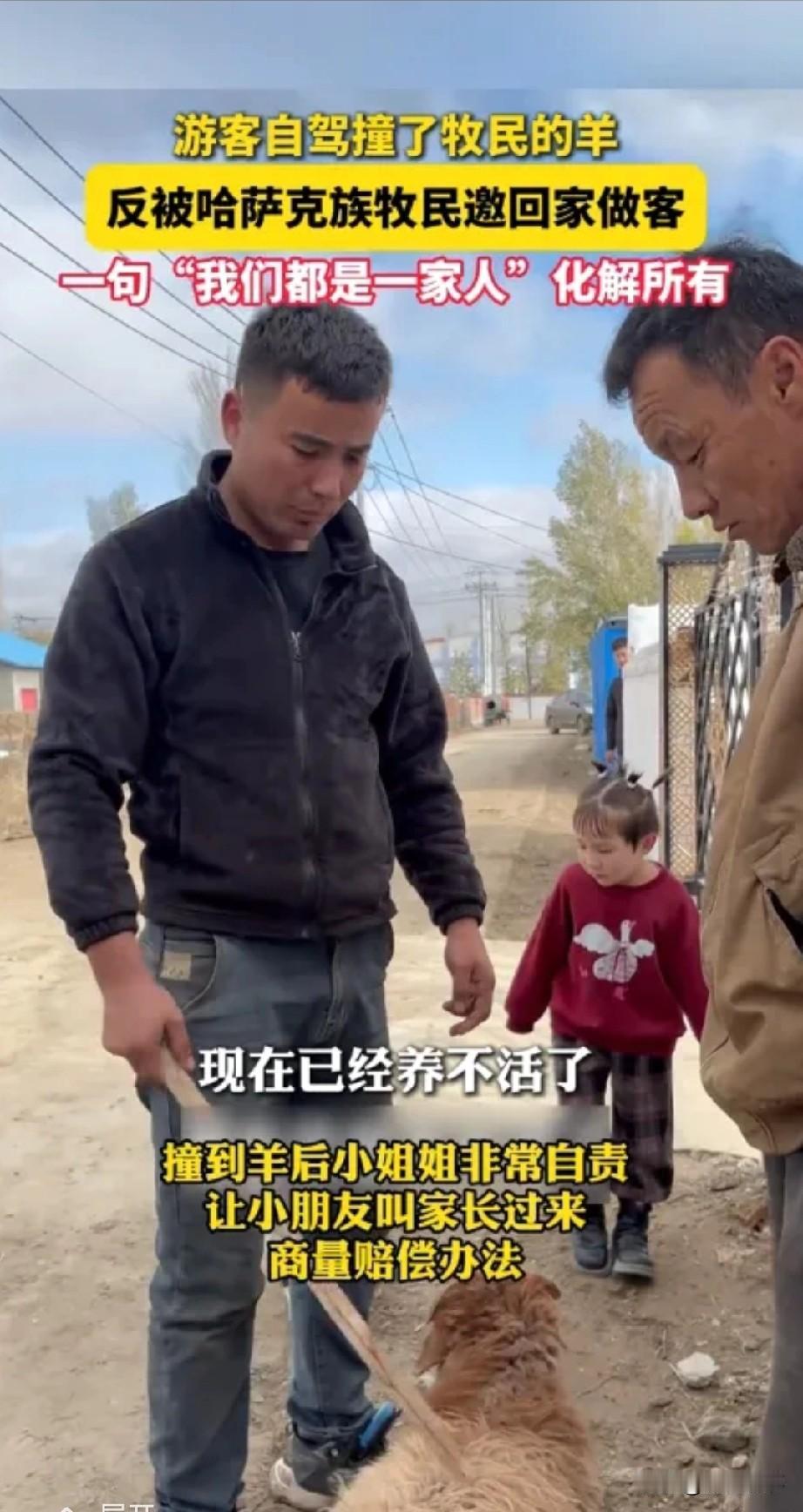 新疆牧民暖心事上央视:游客撞羊反获热情款待 10月23日消息,新疆阿勒泰一名游客自驾时不慎撞折牧民的羊腿,本以为要付高额赔偿,却被牧民的淳朴举动温暖,这事还登上了央视新闻。 当时游客驾车进村庄,看到两名小朋友赶着羊群,特意等羊群全部走过才开车,仍不小心压到一只羊。游客让小朋友叫来家长谈赔偿,牧民检查后发现羊腿骨折没法养了,没提赔钱的事,只让游客帮忙把羊拉回自家。 游客之前看过撞家畜被高价索赔的报道,心里很紧张,怕被讹。到牧民家后,对方直接处理了受伤的羊,全程没提赔偿。晚上,牧民端上煮好的羊肉招待,说本来就打算杀羊,请帮忙盖羊圈的邻居吃饭,刚好用上这只受伤的羊。 游客过意不去,临走时悄悄在牧民家门口放了900元红包。牧民发现后把钱转回来,还说过年会给游客寄奶酪、风干肉等特产。 这事在网上火了,网友都夸少数民族同胞善良实在,也让更多人想趁着假期去新疆看看。
