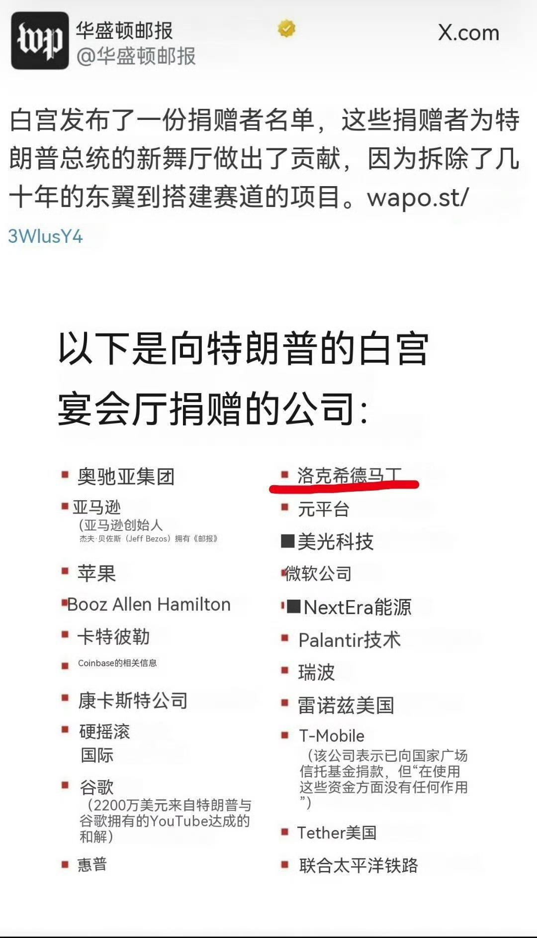 据《西雅图时报》10月23日报道,总统特朗普政府公布了白宫东翼大型宴会厅建设的捐