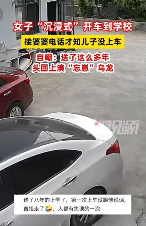 “太尴尬了!”10月21日,浙江江山,一女子早晨起来开车送儿子上学,一路“沉浸式”开车到学校,接到婆婆打电话才得知她竟然把儿子落在家里了!网友:是你要去上小学吗? 早上时间比较紧,有些粗心的家长匆匆忙忙送孩子上学,结果光把自己送去学校了,孩子还在家里。 一女子早晨开车送孩子上学,她两口解决掉早餐,背上孩子的书包就钻进了驾驶位,孩子拉车门时,突然想到没拿牛奶,赶忙跑进屋里,女子没察觉到儿子还没上车,一脚油门就把车开走了。 等到孩子拿着牛奶从屋里再出来,女子早已离去多时,孩子四处看了看才确认妈妈已经开车离开,无奈之下,他只能求助奶奶。 此时,女子正开着车在路上风驰电掣,今天她全程“沉浸式”开车,也头一次没和儿子搭话,没想到就是这一时大意,让她没能及时发现孩子没上车。 眼看马上就到学校,女子的手机忽然响了,孩子奶奶打来电话告知孩子还在家里,女子有些不敢置信,她回头一看,车后排还真没有人! 不少网友调侃,女子这架势看起来是要自己去上学,家长们早上送孩子上学时,可一定要确认孩子有没有上车,千万不要闹出这尴尬的“忘崽”乌龙! 信息来源:《女子“沉浸式”开车到学校,接婆婆电话才得知儿子没上车,自嘲:送了这么多年,抖腿上演“忘崽”乌龙》星视频