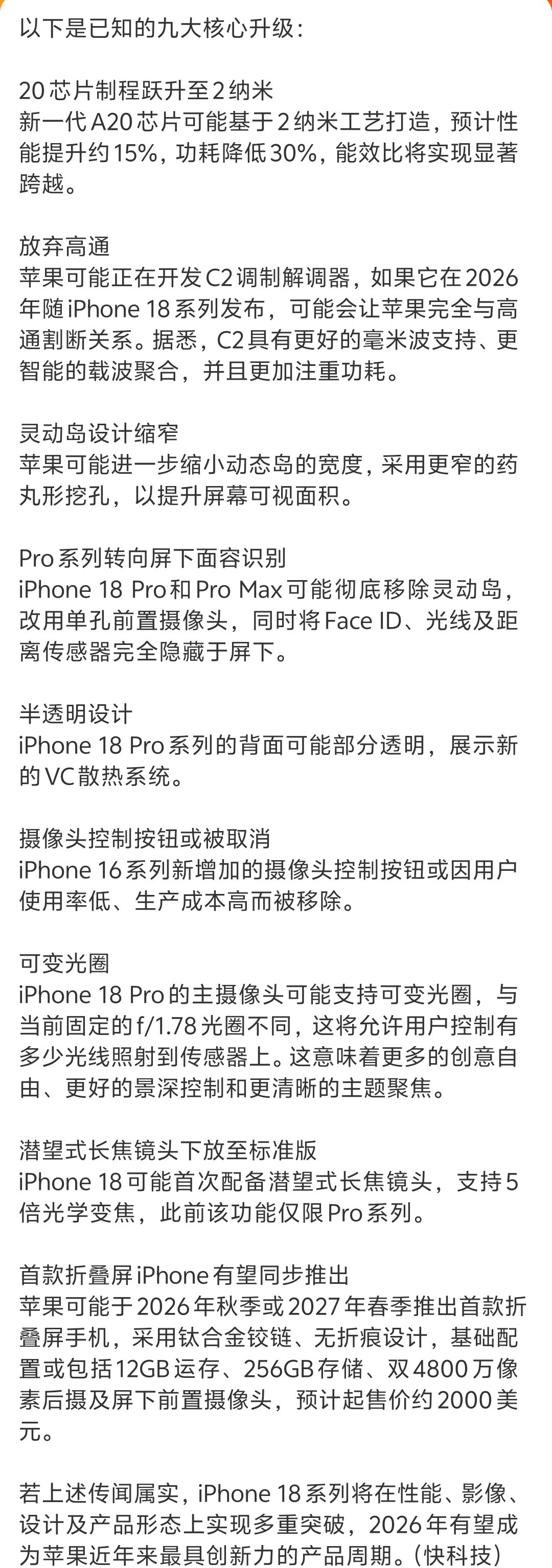 iPhone18系列迎史上最大革新每次我准备买苹果,他总告诉我,下一代将迎来重大